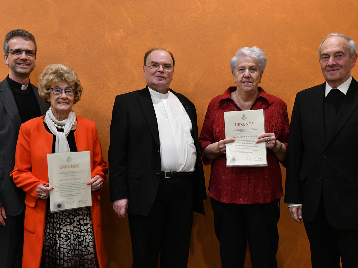 Im Jahr 1969 hat der damalige Dompfarrer Georg Beis Luise Wiedersatz um die Leitung der Seniorenarbeit im Dom gebeten. Jahrzehntelang waren Wiedersatz und ihre Mitstreiterinnen für die Bewirtung nach Priesterweihen, Aussendungsfeiern und Chrisammessen im Einsatz. In der vergangenen Woche würdigte Diözesanadministrator Prälat Dr. Bertram Meier deren großen Verdienste mit der Goldenen Ehrennadel der Diözese Augsburg.