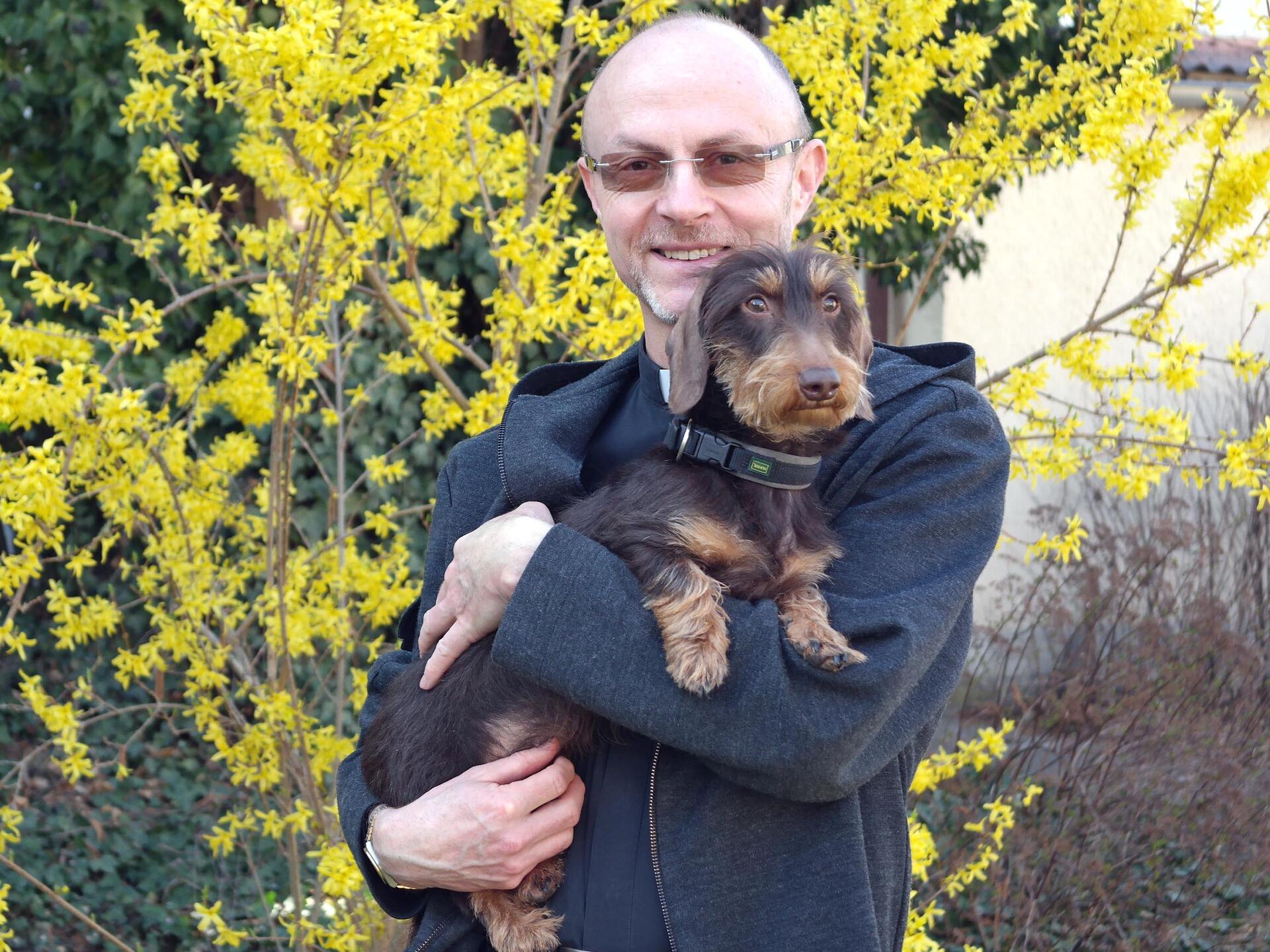 (Zuchering) Die Tür des Pfarrhofs in Zuchering öffnet sich. Edgar und Justus begrüßen die Gäste mit geradezu überschwänglicher Freude. Laut bellend und aufgeweckt fegen die beiden Dackel durch den Hausflur. Hinter den Vierbeinern erscheint entspannt Pfarrer Adolf Rossipal, Dekan des Dekanats Pfaffenhofen. Sofort wird die Verbundenheit zwischen ihm und seinen „zwei Jungs“, wie er seine Hunde gerne nennt, deutlich.