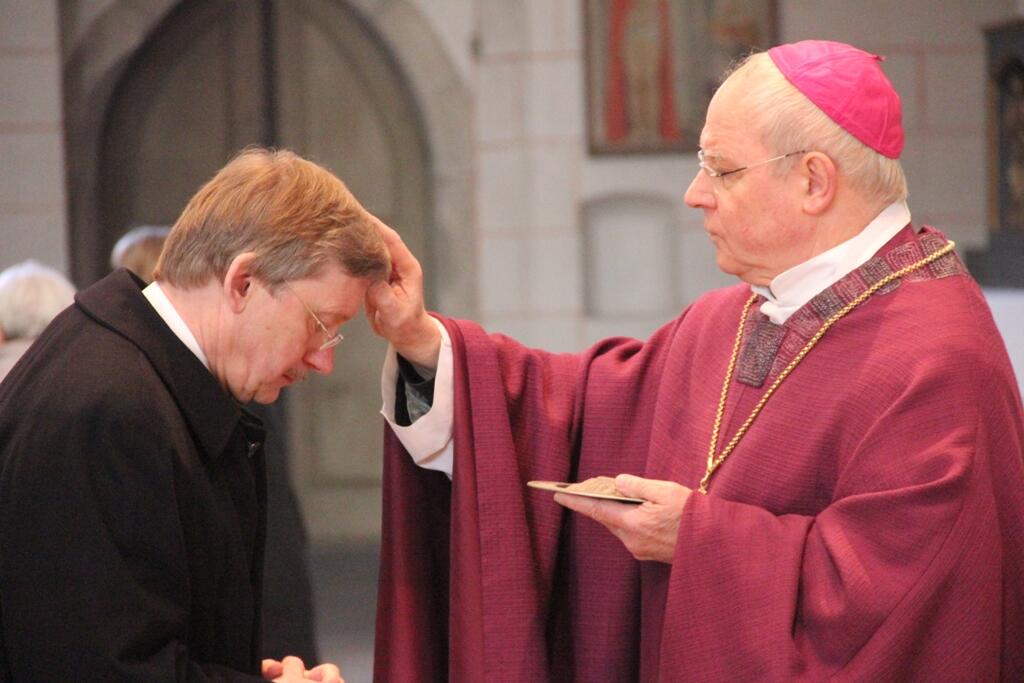 Augsburg (pba). Am heutigen Aschermittwoch, dem Beginn der Österlichen Bußzeit, hat Bischof Dr. Konrad Zdarsa im Hohen Dom zu Augsburg ein Pontifikalamt gefeiert. Der Aschermittwoch wird im Hohen Dom zu Augsburg traditionell auch als „Aschermittwoch der Künstler“ gefeiert. An dem Pontifikalamt mit Bischof Zdarsa nahmen auch Weihbischof em. Josef Grünwald, Domdekan Dr. Dietmar Bernt, Generalvikar Prälat Karlheinz Knebel, Domkapitular Dr. Wolfgang Hacker als Leiter der Abteilung Kirche und Kultur sowie weitere Mitglieder des Augsburger Domkapitels teil. Zum Zeichen der Buße und Umkehr empfingen die Gläubigen im Gottesdienst das Aschekreuz. Es soll den Menschen daran erinnern, dass er vom Staub genommen ist und wieder zum Staub zurückkehren wird (Gen 1,26 f.; 2,7).