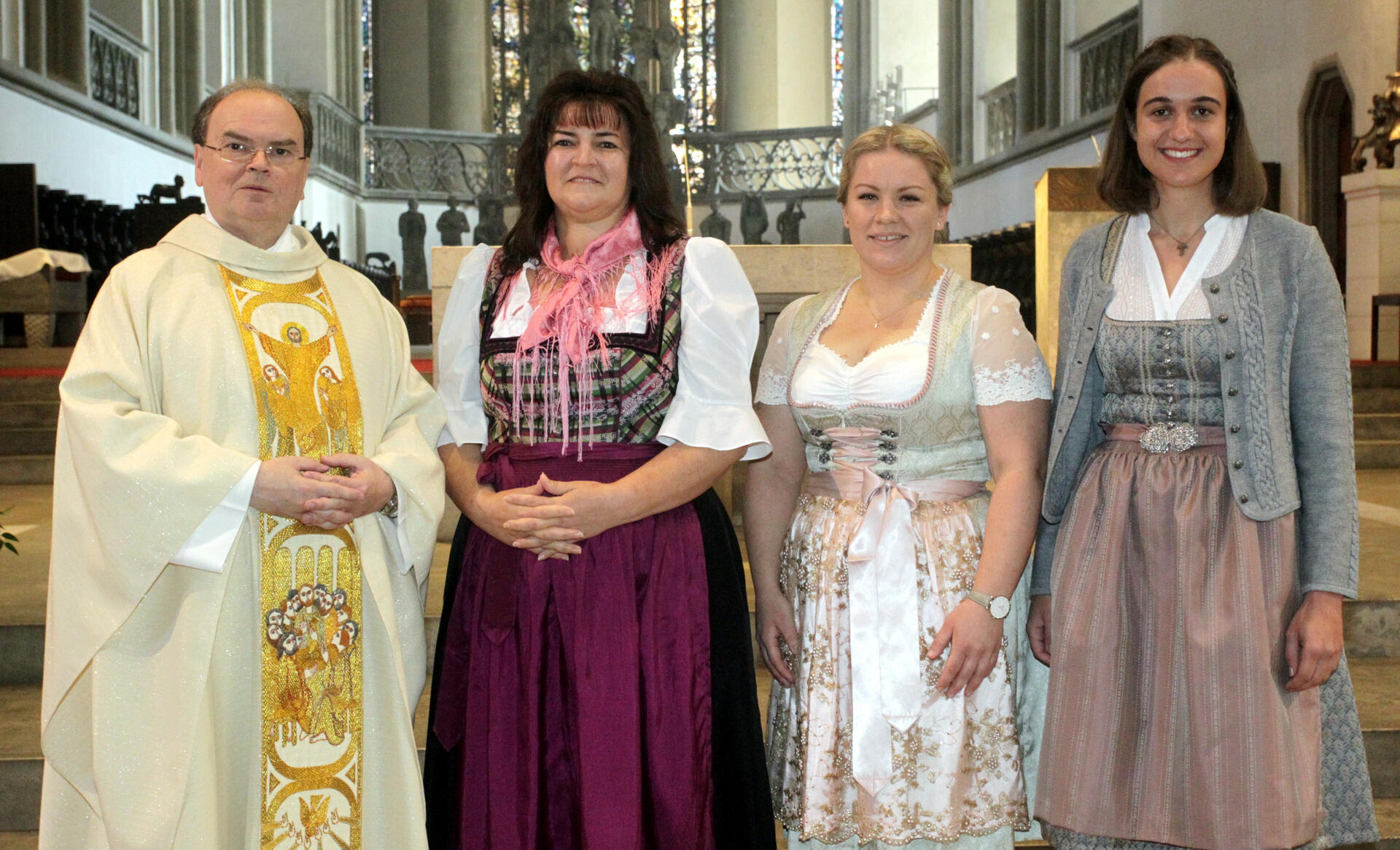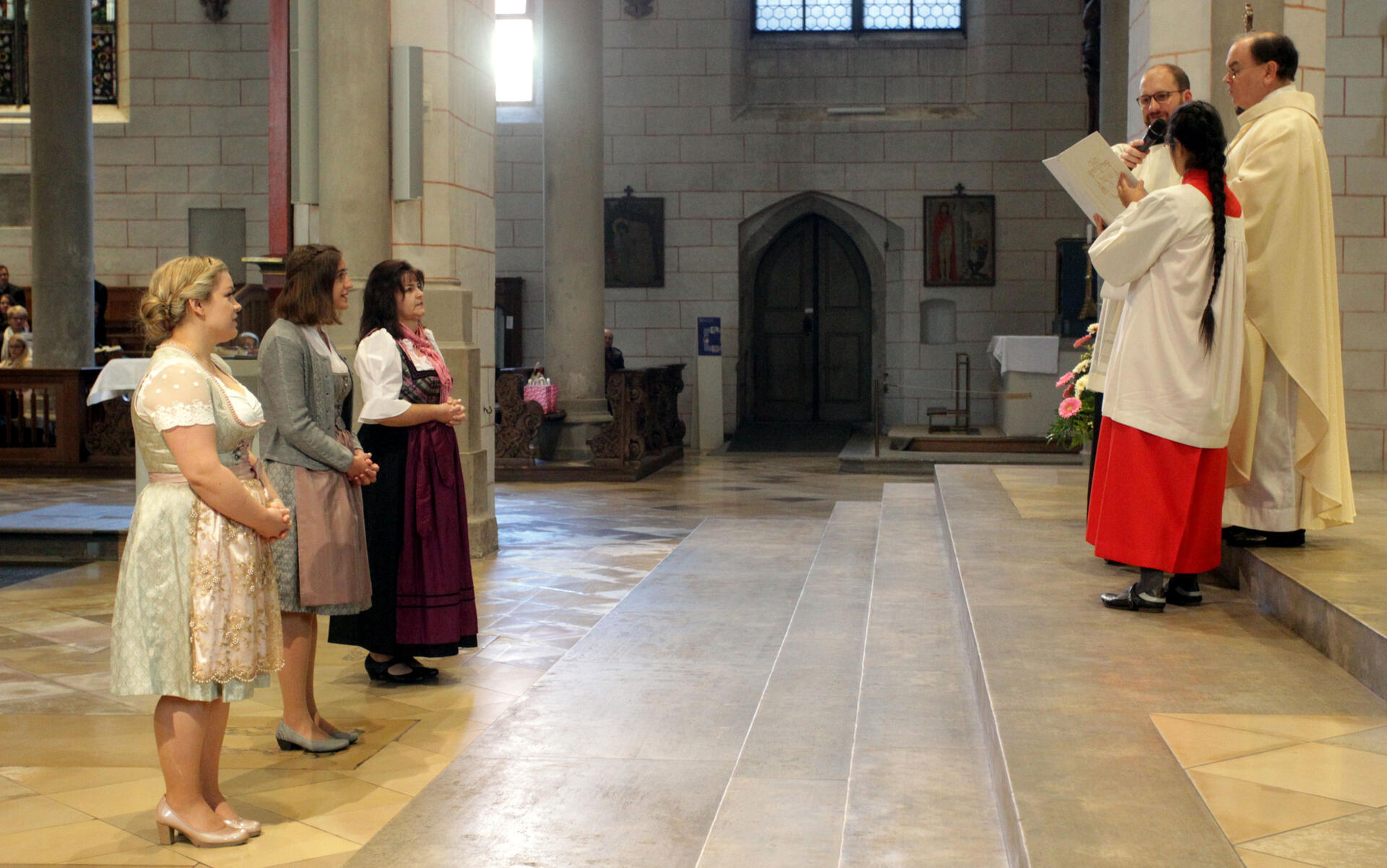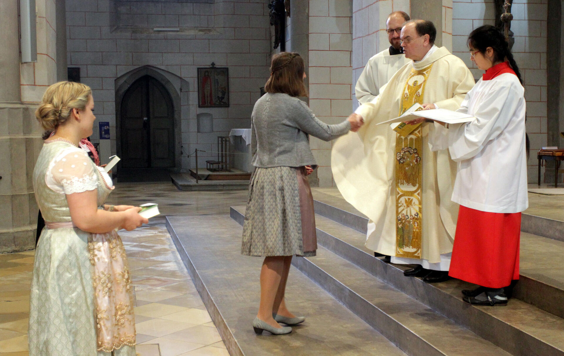 Augsburg (pba). Diözesanadministrator Prälat Dr. Bertram Meier hat im Hohen Dom Verena Wörle (Obergriesbach) und Marie Zengerle (Mörslingen) als Gemeindereferentinnen und Christa Döllner (Euernbach) als Pfarrhelferin in den pastoralen Dienst der Diözese Augsburg ausgesandt. Als äußeres Zeichen ihrer Beauftragung überreichte er ihnen jeweils ein Exemplar der Heiligen Schrift.