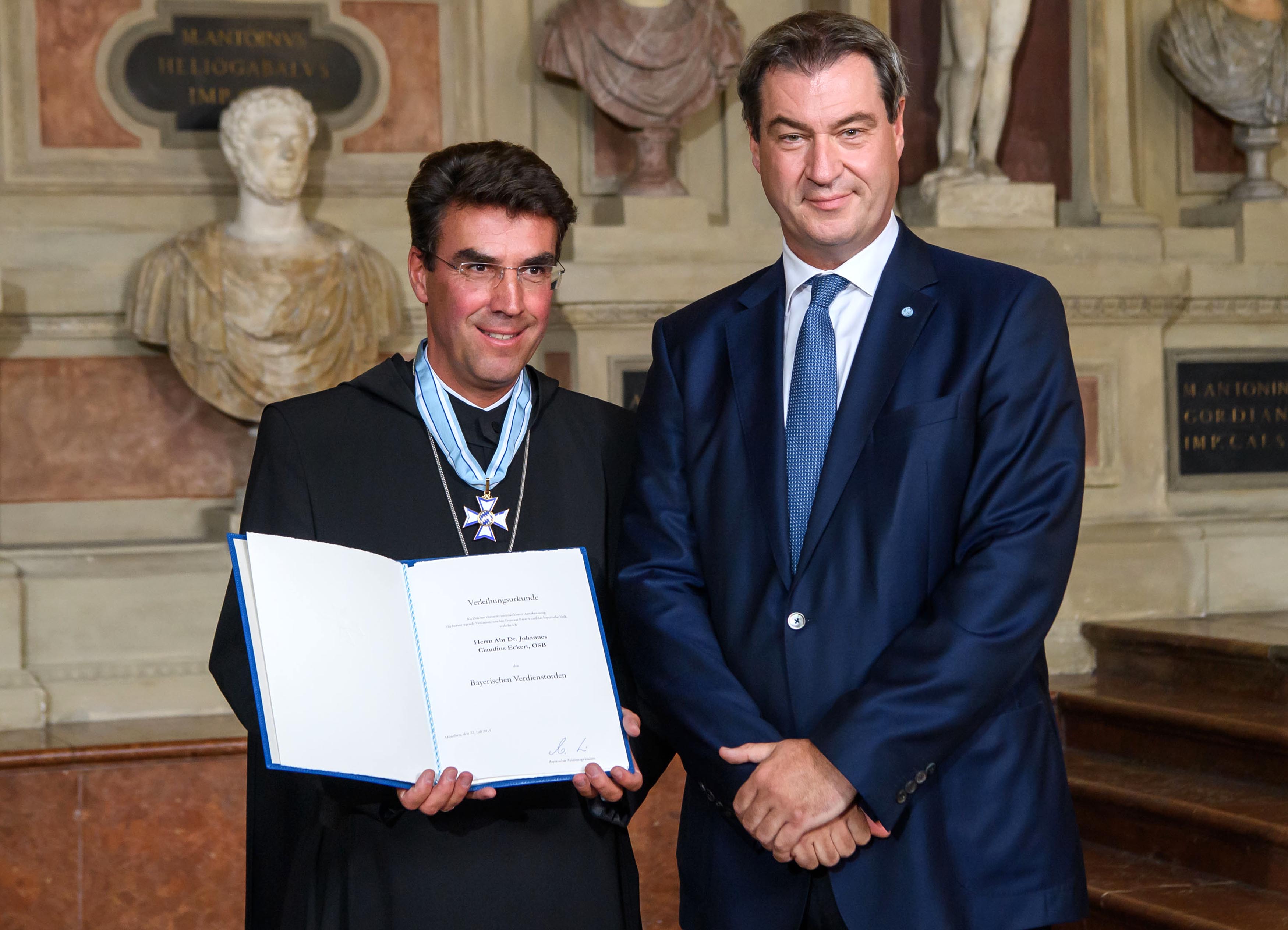 Der bayerische Ministerpräsident Dr. Markus Söder hat gestern bei einer Feierstunde im Antiquarium der Münchner Residenz 58 Persönlichkeiten mit dem Bayerischen Verdienstorden ausgezeichnet. Darunter waren Domkapellmeister Reinhard Kammler, Sr. Mansueta Peschel, langjährige Leiterin des Kinderheims Oettingen, und Benediktinerabt Dr. Johannes Eckert.