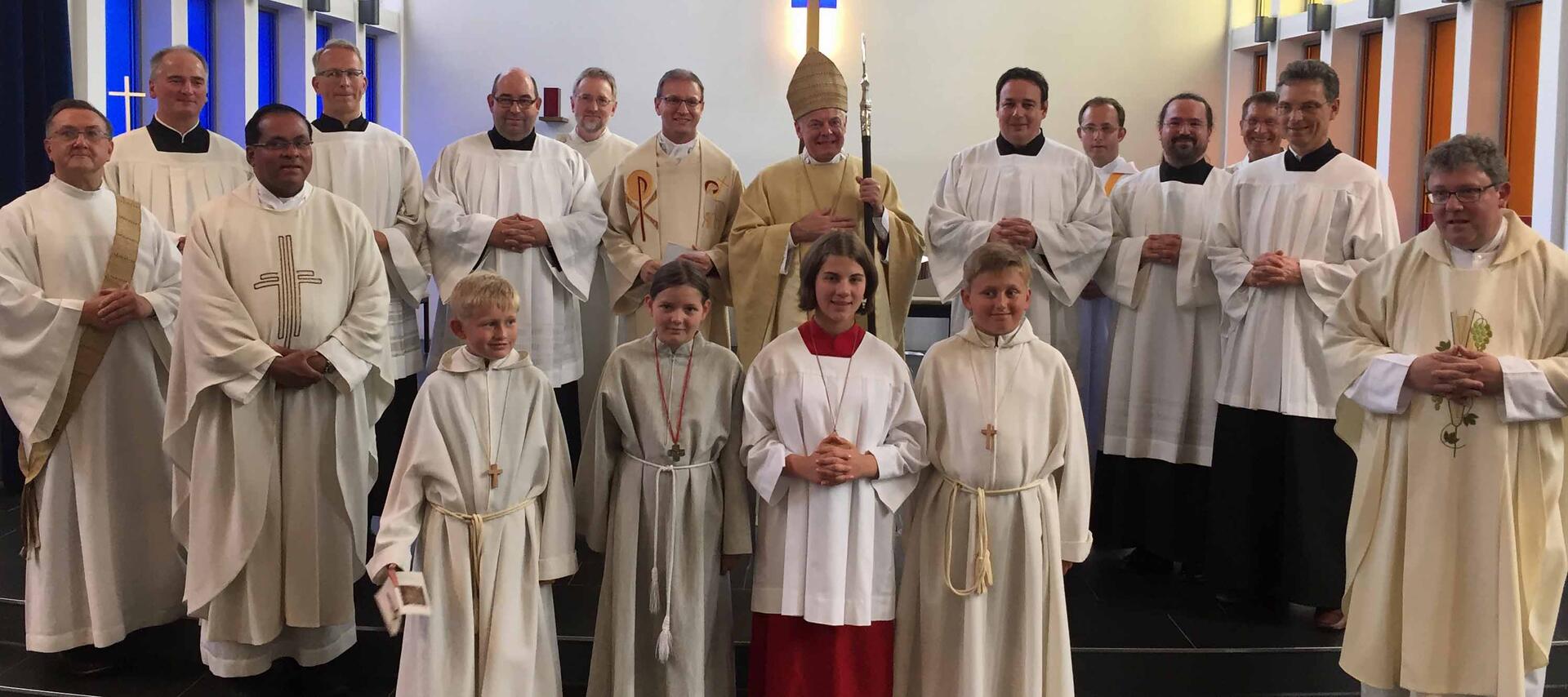 In einer Festmesse in der Hauskapelle St. Claret in Weißenhorn wurden kürzlich sechs Männer, die sich derzeit auf dem Weg zum Ständigen Diakon befinden, mit dem Lektorat und Akolythat beauftragt: Bernhard Beigel (Pfarrei St. Maria Hilfe der Christen, Starnberg), Adolf Michael Gastl (Pfarrei St. Magnus, Kühbach), Martin Linder (Pfarrei St. Ulrich-Gartenstadt, Bad Wörishofen), Frank Schnarrenberger (Pfarrei Mariä Himmelfahrt, Neuburg), Dr. Marc André Selig (aus der Kuratie St. Georg, Margertshausen) und Bernd Skuras (Pfarrei St. Johann Baptist, Peißenberg). Die Übertragung der Dienste nahm Weihbischof Dr. Dr. Anton Losinger im Auftrag von Bischof Dr. Konrad Zdarsa vor.