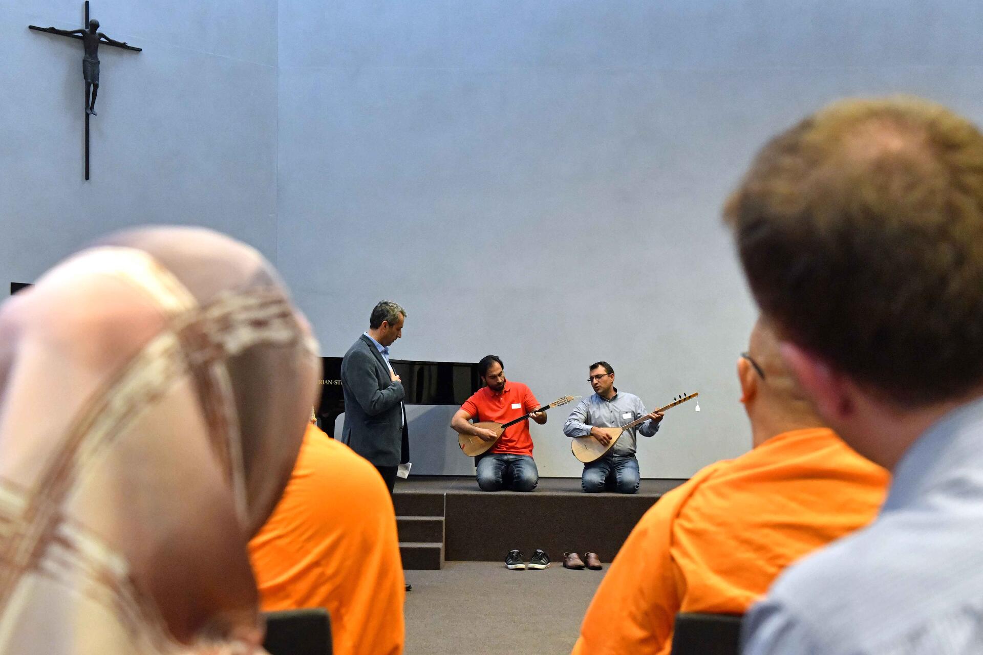 Muslime beginnen viele Handlungen mit der Basmala, in der der Gläubige Gottes Segen erbittet: „Im Namen Gottes des Allerbarmers, des Barmherzigen.“ Muslime bekennen damit, dass sie auf Gottes Segen und Schutz angewiesen sind. Jeder Egoismus hat zurückzutreten, wie Mitglieder der anwesenden muslimischen Gemeinden erläuterten. Als weiteres Beispiel wählten sie die Sure 1, die in Teilen als Bittgebet bzw. als Gebet um göttlichen Schutz formuliert ist. Einen allgemeinen Segen sprach ein alevitischer Geistlicher. Im Alevitentum ist es Praxis, Segensgebete in Form von Hymnen zum Ausdruck zu bringen. Auf ihren Lauten trugen zwei Barden solche Hymnen vor und machten diese Gebetsform für die Teilnehmer erlebbar.