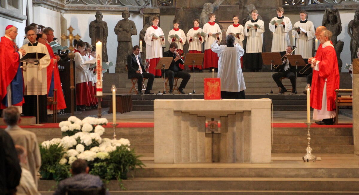 Diesen Geist Gottes empfingen nach der Predigt zwölf junge Frauen und Männer, denen Bischof Konrad das Sakrament der Firmung spendete. Musikalisch gestaltet wurde das Pfingsthochamt von den Augsburger Domsingknaben. Begleitet vom Bläserensemble der Dommusik sangen sie die „Missa Laetatus sum“ von Tomás Luis de Victoria (1548-1611).