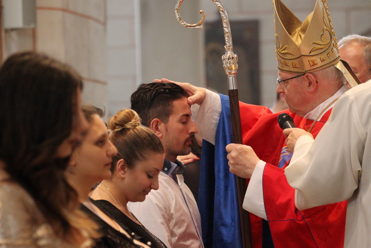 Zu Beginn der Predigt ging Bischof Konrad der Frage nach, inwiefern die Bedeutung des Pfingstfests in unserer Gesellschaft überhaupt noch bekannt sei. Schon vor 30 Jahren hätte einer Umfrage in der Bundesrepublik Deutschland zufolge mehr als die Hälfte aller Befragten nicht gewusst, worum es an Pfingsten gehe. „Sollte sich das heute etwa zum Besseren entwickelt haben?“, stellte der Bischof zweifelnd in den Raum. Im Gegenteil: Gerade heute brauche es sehr viel Zeit, um sogar Katholiken den Sinn und die Bedeutung des Pfingstfests zu erklären, so Bischof Konrad.