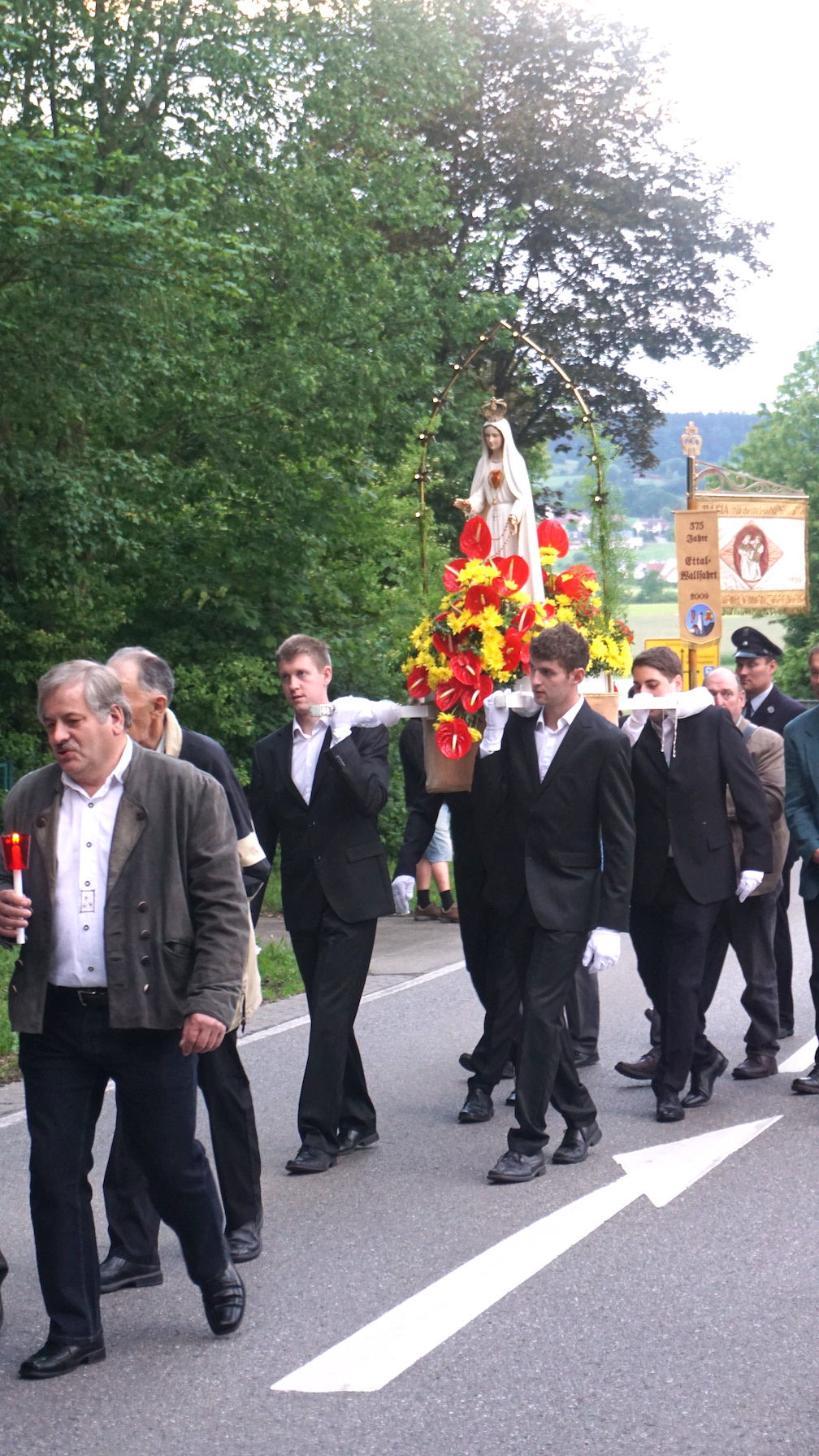 Maria Vesperbild/Augsburg (pba). Bischof Dr. Konrad Zdarsa war gestern Abend zu Gast in Maria Vesperbild. Nach einem Pontifikalamt in der Wallfahrtskirche nahm der Bischof mit rund tausend Gläubigen auch an der Lichterprozession teil. Sie führte über den Schlossberg zur Mariengrotte. Dort beendete er den Abend mit dem Segen, bevor vom Musikverein Balzhausen noch die Papsthymne gespielt wurde. Er freue sich sehr über den Besuch des Bischofs, richtete sich Wallfahrtsdirektor Erwin Reichart an die Gläubigen. Denn ein Bischof stehe in der Nachfolge der Apostel. „Und das passt zum heutigen Fest ganz besonders, weil ja die Apostel ganz besonders geistbegabt worden sind und diese Gabe weitergegeben haben.“ Er bat die Gläubigen auch, dem Bischof für sein Wirken zum Wohle unserer Diözese und von uns allen dankbar zu sein.