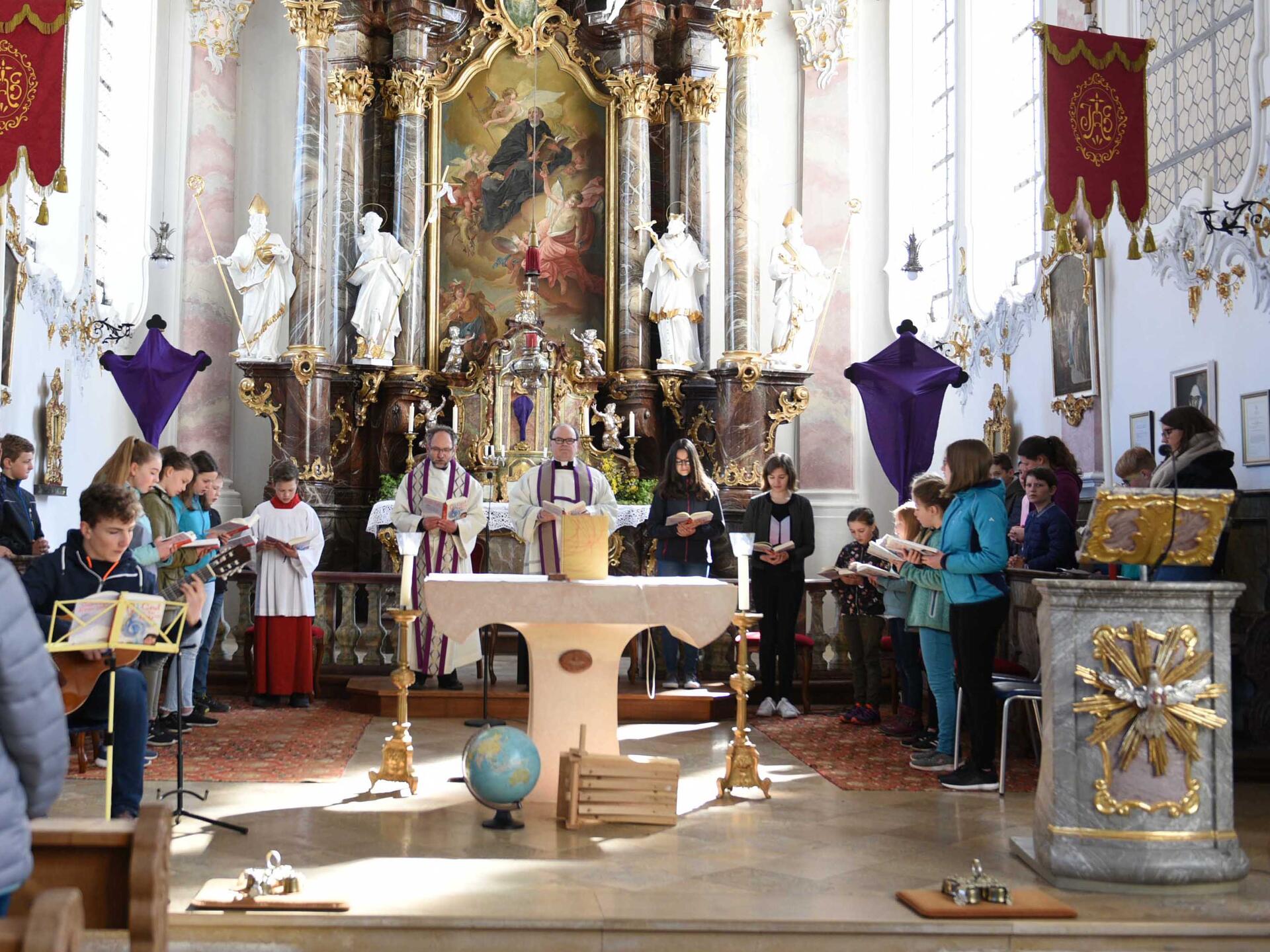 Nach dem Wortgottesdienst wurde den Kindern und Jugendlichen eine Vielfalt an Workshops geboten: Sie konnten gemeinsam Singen, ein Kreuz und eine Osterkerze basteln sowie mehr über das Thema „Weihrauch“ oder die Eine-Welt-Arbeit erfahren.