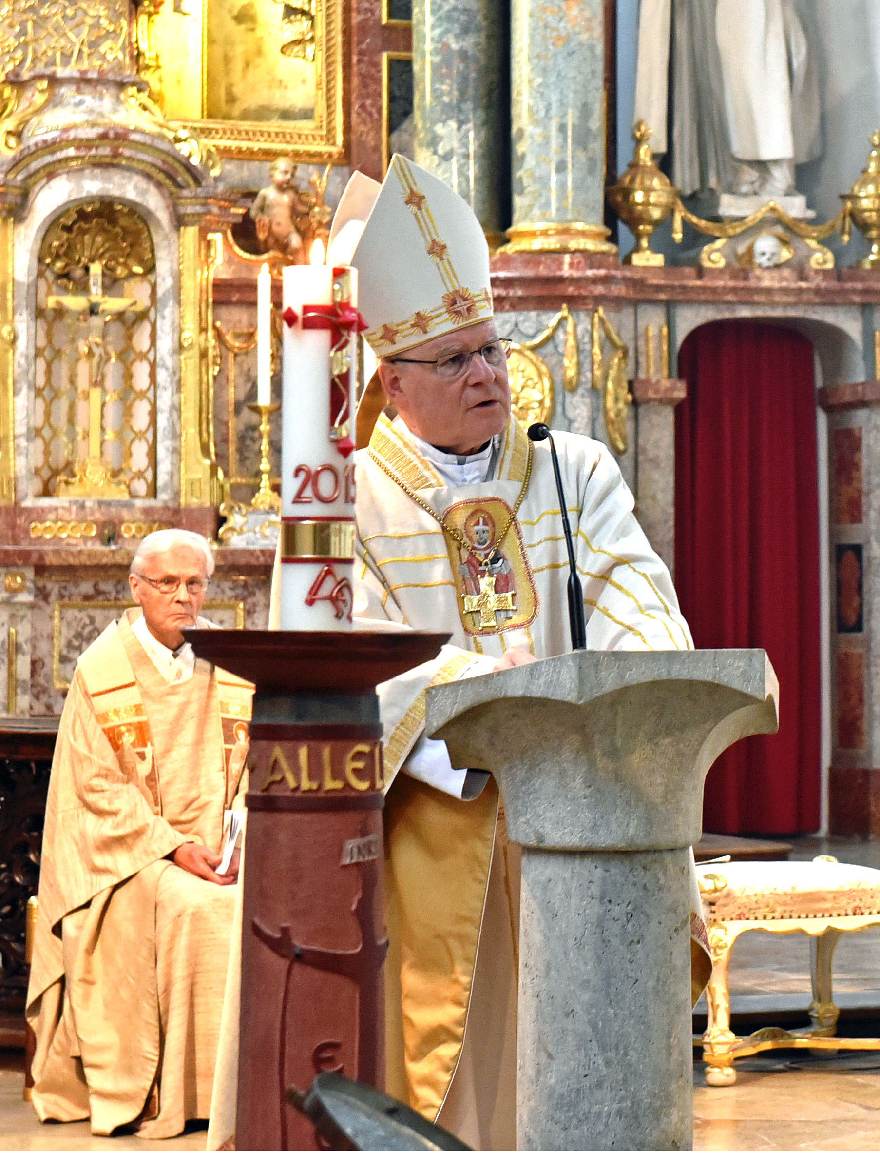 Bischof Konrad richtete sich in seiner Predigt mit ermutigenden Worten an die Schwestern. Zwar sei nach der Brandkatastrophe, bei der eine Klosterschwester ihr Leben verloren hat, nichts mehr so wie vorher, aber sie würden gestärkt daraus hervorgehen. „Christliche Trauer eröffnet den Weg zur Besinnung auf das Eigentliche“, so der Bischof. Diese Besinnung wiederum führe zu Dankbarkeit. Daher würde die Wiedereröffnung der Klosterkirche zu Recht mit der Feier der Eucharistie, der Danksagung, begangen. Dabei verwies er auch auf die Berufung der Ordensschwestern: „Ihre Berufung, unser Glaube, bedeutet ja alles andere als bloße Bewahrung des Bestehenden.“ Vielmehr gehe es um einen größeren Neubeginn, erklärte Bischof Konrad.