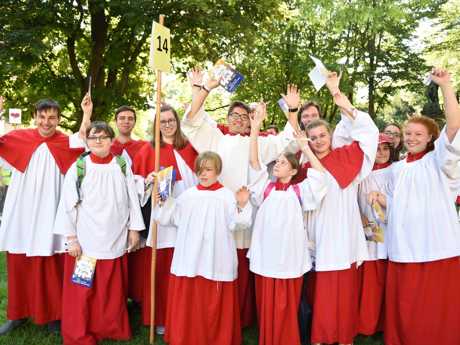 Musikalisch begleitet wurde der Gottesdienst von einem Projektchor unter der Leitung von Robert Haas. Bereits zur Ministranten-Romwallfahrt im vergangenen Jahr hatte sich der Chor bestehend aus Ministrant/-innen des Bistums zusammengefunden und die Messe „Du lädst uns ein“ in der Lateranbasilika in Rom aufgeführt.