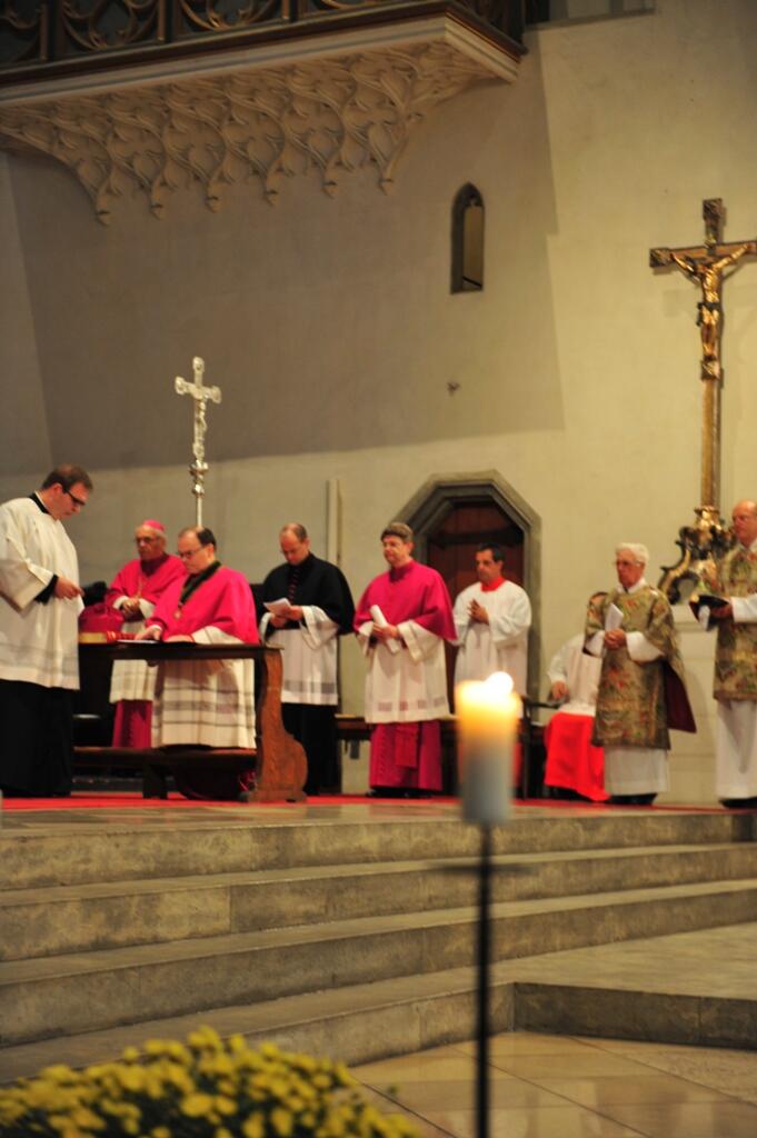 Augsburg (pba). In einer feierlichen Pontifikalvesper im Hohen Dom wurden heute Prälat Dr. Bertram Meier als neuer Domdekan, Dr. Michael Kreuzer als Domkapitular und Florian Markter als Domvikar offiziell in ihre Ämter eingeführt. Feierlich umrahmt wurde die Vesper vom Kammerchor der Augsburger Domsingknaben unter der Leitung von Reinhard Kammler.