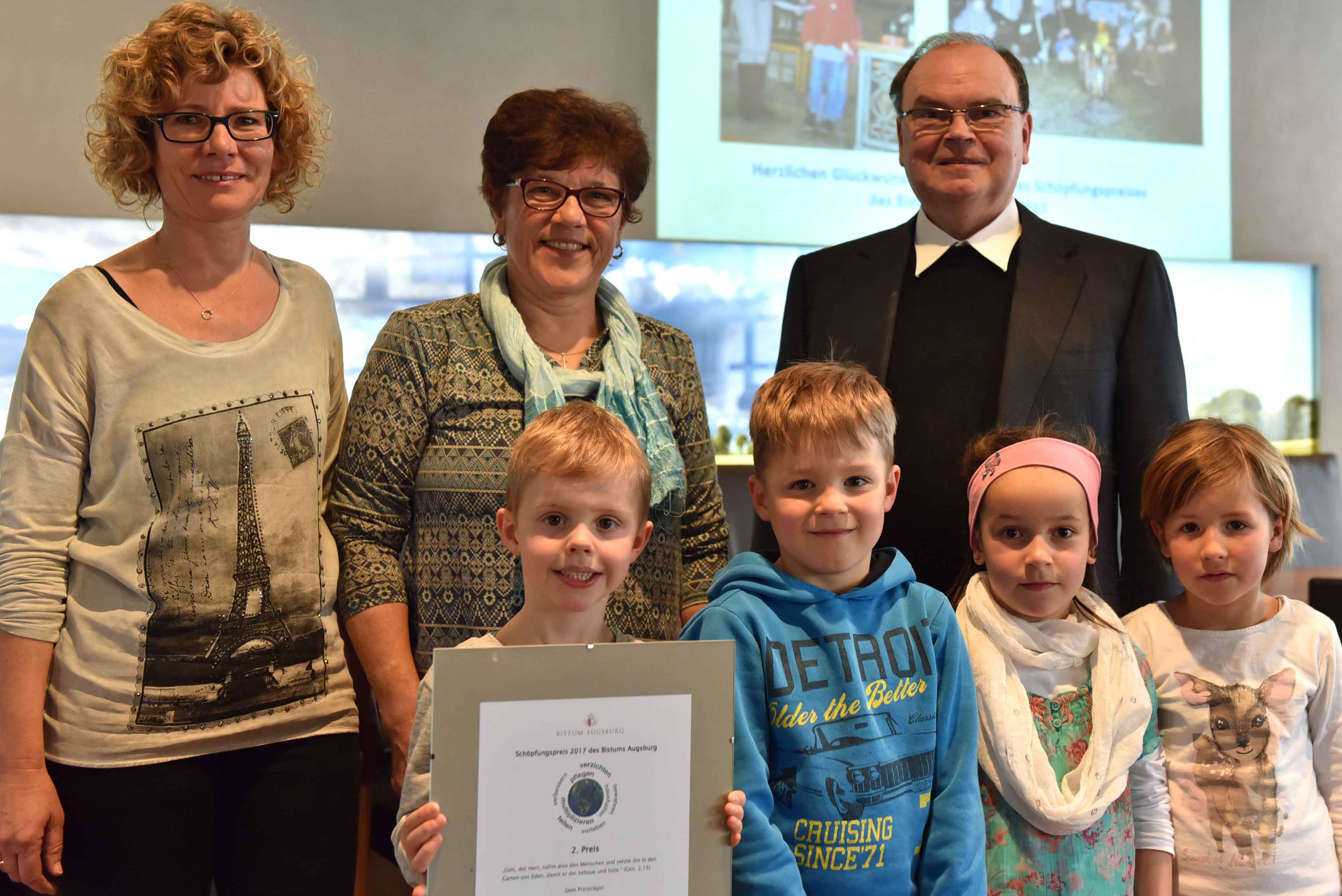 Die Jurymitglieder des diözesanen Arbeitskreises „Schöpfung bewahren“ unter der Leitung des Umweltbeauftragten Christoph Wessel wählten die drei Preisträger aus 20 eingereichten Bewerbungen von Kindergärten, Kirchenstiftungen, Bildungshäusern und Verbänden aus. Schirmherr Prälat Dr. Bertram Meier, Leiter des Bischöflichen Seelsorgeamts, verlieh den Gewinnern die Preise in Höhe von 1000, 800 und 600 Euro.