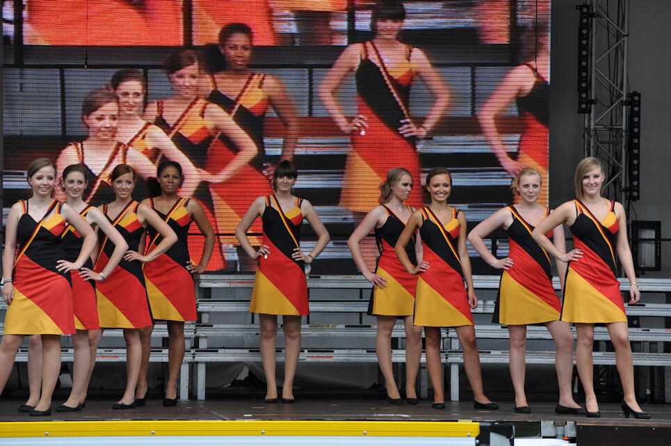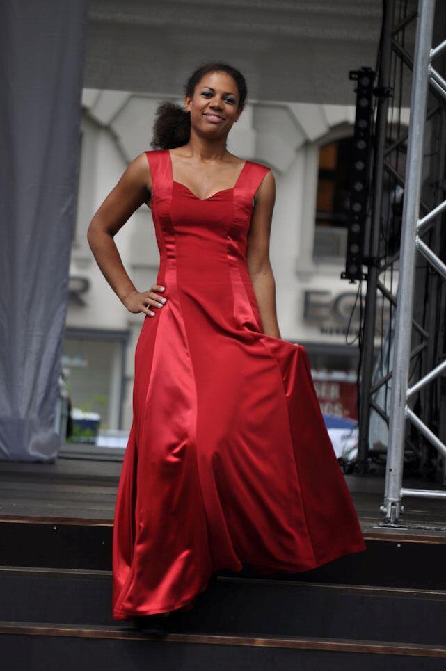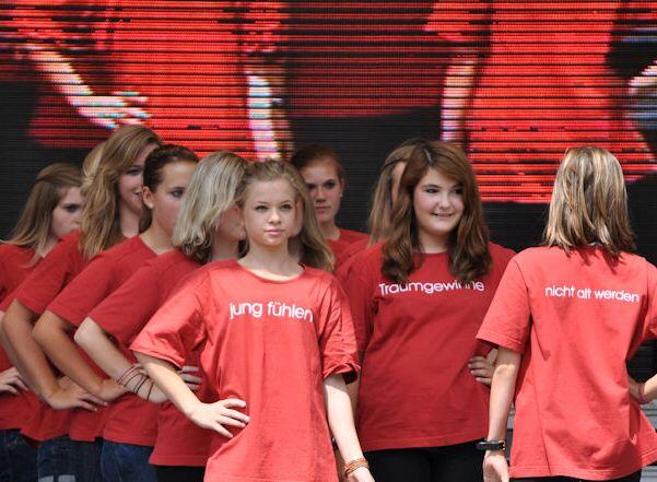 Augsburg (kdfb). Der Katholische Deutsche Frauenbund (KDFB) hat am 5. Juli in Augsburg auf dem Stadtmarkt und im Kulturstadion am Rathausplatz Mode in einer Modenschau präsentiert, die fair unter ökologischen und lohngerechten Aspekten produziert worden ist. 24 Models aus Augsburger Schulen zeigten Accessoires, Freizeit- und Sportbekleidung bis hin zur festlichen Abendgarderobe, die von Moshiki-Mode, HessNatur, dem Weltladen Augsburg, der Aktion Hoffnung und dem Runners Shop zur Verfügung gestellt worden war. Auch ein Deutschlandkleid, passend zur Frauenfußball-WM, das eigens von einer Frauenbundfrau aus Simbach a. Inn aus regional hergestelltem Leinen gefertigt worden ist, wurde vorgestellt.