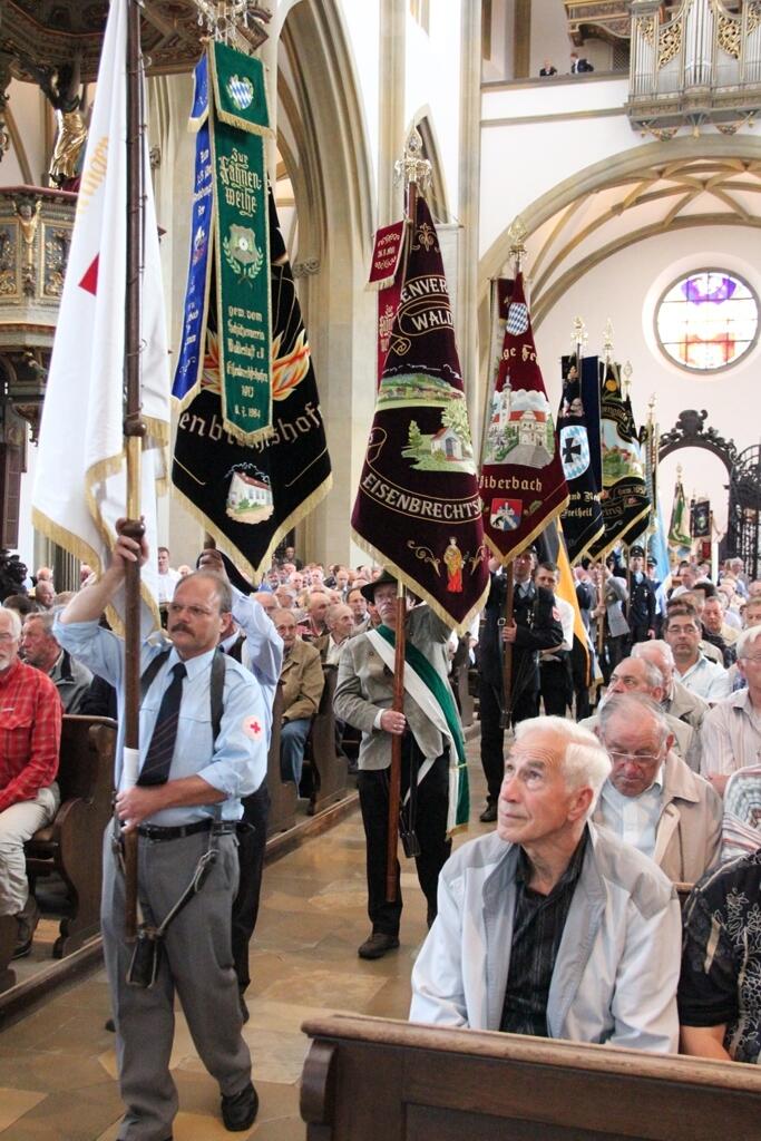 Augsburg (pba). Rund 2.000 Männer sind am Dienstagabend zum Schrein des Hl. Ulrich in der Basilika St. Ulrich und St. Afra gepilgert. Die Männer kamen aus allen Teilen des Bistums. Zahlreiche Fahnenabordnungen vertraten Verbände, Hilfsorganisation, Feuerwehren, Chöre und Gebirgsschützen aus den Dekanaten der Diözese Augsburg. Bischof Dr. Konrad Zdarsa ging den Pilgerweg der Männer vom Hohen Dom zu Augsburg gemeinsam mit den Männern. Ebenfalls dabei war Bischof Nikolaus Messmer aus Bischkek in Kirgisistan. Bischof Nikolaus leitet dort die Apostolische Administratur Kirgisistan, zu der etwa 500 Katholiken in 16 Gemeinden gehören. Dabei ist Kirgisistan rund 200.000 Quadratkilometer groß, etwa halb so groß wie Deutschland. Die Bischöfe zelebrierten in der Basilika die Eucharistiefeier gemeinsam mit rund vierzig weiteren Priestern.