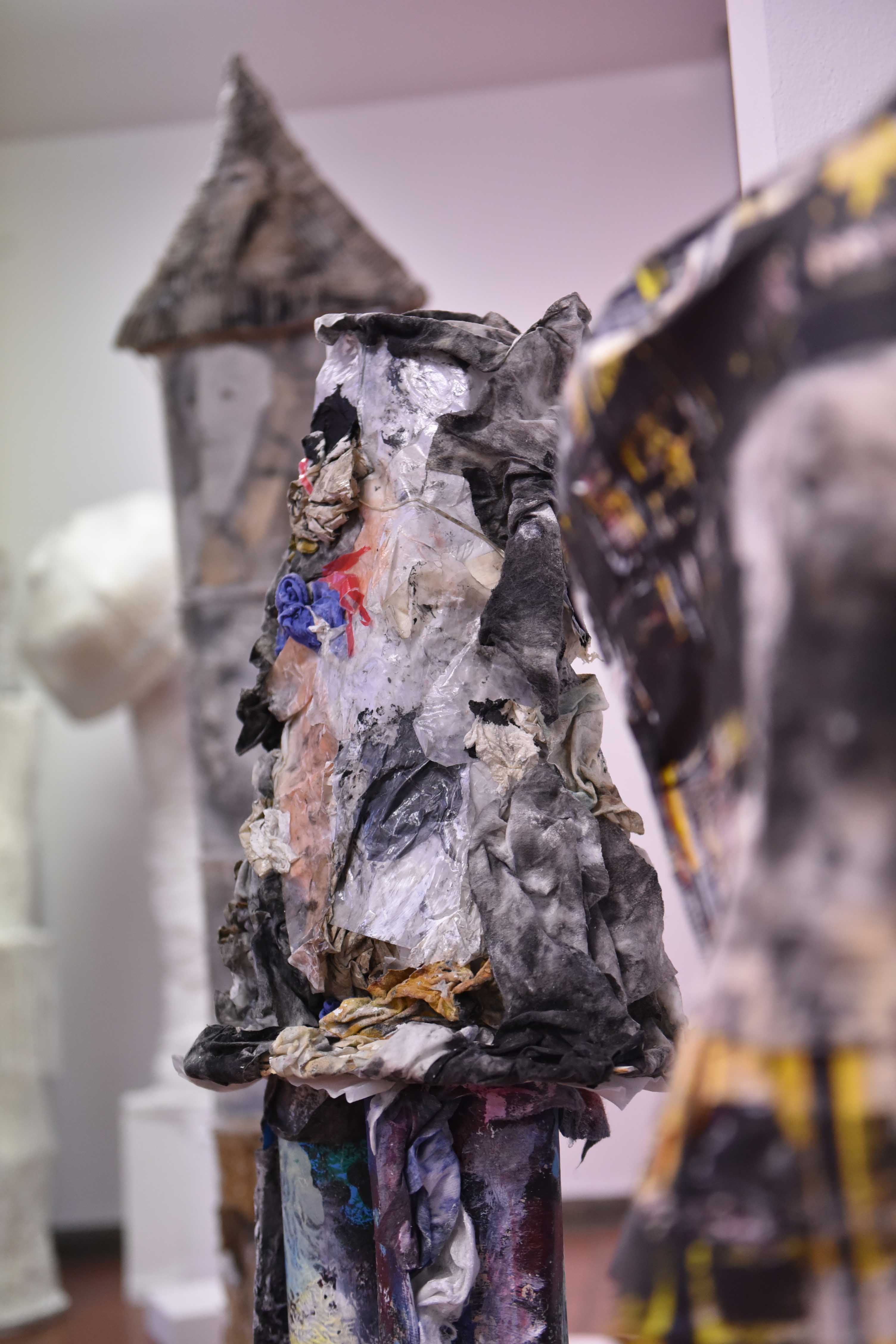 Mit „Fantasietürmen“ hat es der Betrachter bei den Werken von Felicitas Freuding zu tun. Alte, nicht mehr gebrauchte Materialien, wie etwa Notenblätter, Kinderzeichnungen oder vergorene Blütenblätter bilden die Substanz von Freudings Skulpturen und Turmfiguren. Während sich in ihnen vor allem Themen widerspiegeln, die die Gesellschaft und die Menschheit bewegen, lichten Bernd Passauers Fotografien Türme der modernen Welt ab. Nicht mehr Kirchen und Klöster würden das heutige Bild deutscher Großstädte prägen, sondern Industrie-, Banken-, und Versicherungszentralen seien die „heutigen Kathedralen der Macht“, so Bernd Passauer zur Beschreibung seiner Bilder.