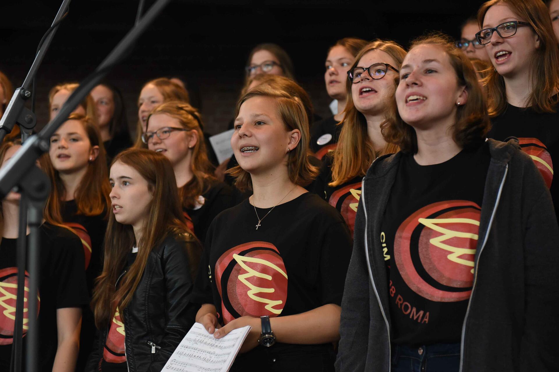 Für den musikalischen Höhepunkt sorgte ein Projektchor aus 75 Ministrantinnen und Ministranten aus allen Teilen des Bistums. Als sogenannte Generalprobe vor der großen Uraufführung in der Lateranbasilika in Rom sang der Chor die Messe „Du lädst uns ein!“ von Robert Haas. Eigens für die Romwallfahrt hat der Allgäuer Liedermacher die Messe komponiert und sie zuvor gemeinsam mit den Sängerinnen und Sängern ein Wochenende lang einstudiert. „Unser Wunsch ist es, dass der Chor die Messe im Lateran nicht ‚aufführt‘, sondern vielmehr die anderen Ministranten dazu motiviert, ebenfalls kräftig mitzusingen. Ziel soll sein, einen großen Chor aus dreitausend Ministranten bei der Wallfahrt hören zu können“, erklärt Thomas Kohler, Referent für Ministrantenpastoral im Bistum Augsburg.