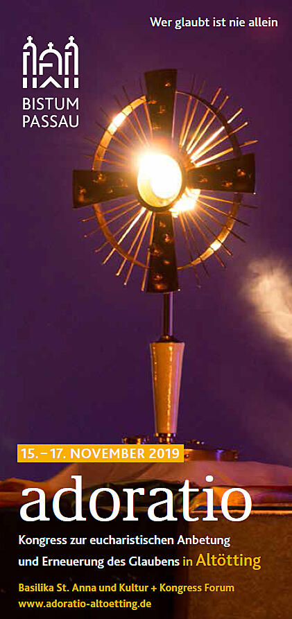 Was heißt es, Gott anzubeten? Wie und warum beten wir überhaupt an? Diesen und vielen weiteren Fragen wird der Kongress „Adoratio“ zur eucharistischen Anbetung und Erneuerung des Glaubens nachgehen. Er findet von Freitag, 15. bis Sonntag, 17. November in Altötting statt. Weihbischof Florian Wörner und der Passauer Bischof, Stefan Oster werden als Referenten den Kongress begleiten. Aufgrund der großen Nachfrage ist das Kartenkontingent erweitert worden und die Anmeldung wieder möglich.