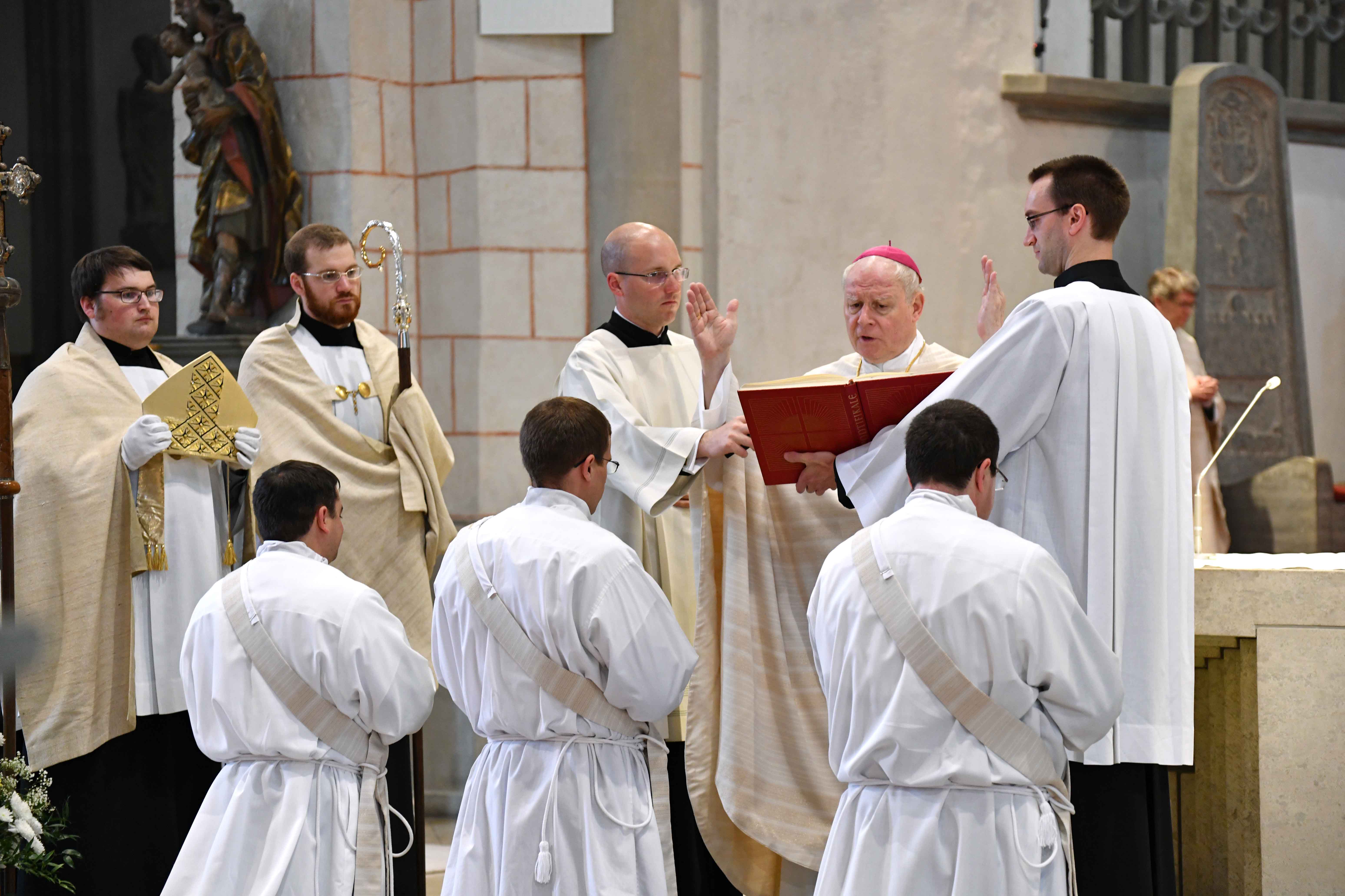 Zudem rief Bischof Konrad neben den Weihekandidaten die anwesenden Gläubigen, darunter viele Verwandte und Freunde, dazu auf, sich nicht von hohen Austrittszahlen, statistischen Befunden und Klagestimmung entmutigen zu lassen: „Wir sind doch nicht angetreten, um Kirchen zu füllen und Mitgliederzahlen zu steigern, sondern unsere Sendung und unser Eifer muss darin bestehen, Menschen in eine lebendige Beziehung zu Jesus Christus zu bringen und den Getauften und Gefirmten zu helfen, das Geschenk zu erschließen, das sie von Gott schon empfangen haben.“