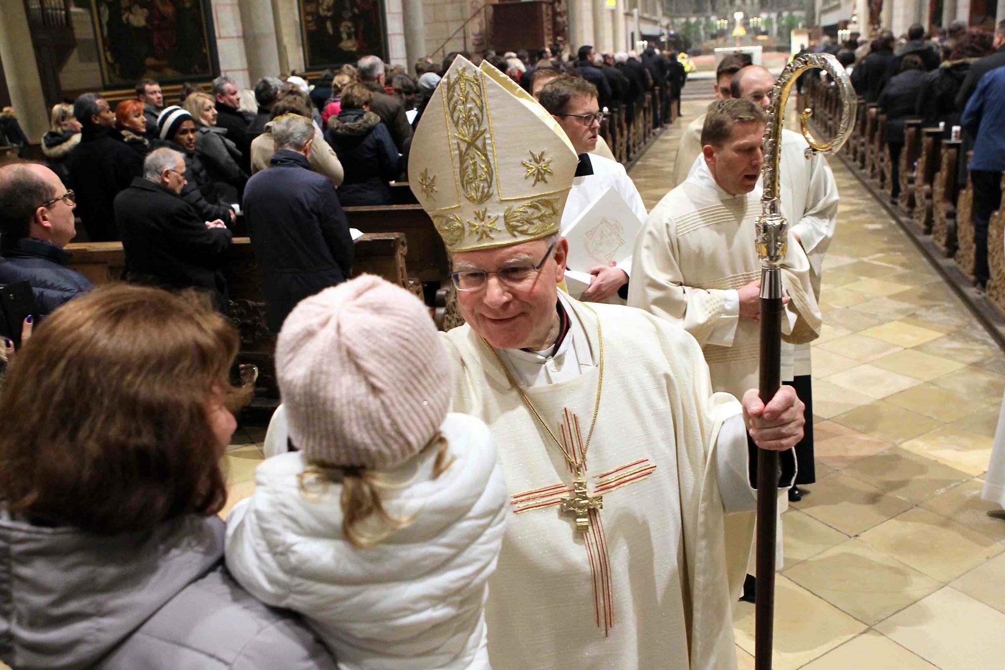 Ostern heiße, Jesus Christus, unseren Herrn, um seiner Selbsterniedrigung und seiner Selbstenttäuschung bis zum Tod für uns kennen und lieben und ihm als dem erhöhten und auferstandenen Herrn in lebendiger, in freudiger Hoffnung verbunden sein, richtete sich der Bischof zu Beginn des Pontifikalamts an die zahlreichen Gläubigen im Hohen Dom. In seiner Predigt führte er diesen Gedanken weiter aus. Im Zentrum des Glaubens stehe die Liebe und die Hoffnung auf den Himmel. Drei Mal habe der Auferstandene Petrus gefragt, ob er ihn liebe. Das sei „die Frage schlechthin, die der Herr auf die jeweils angemessene Weise an jeden Menschen, an jeden von uns stellt.“ Auch Maria von Magdala habe erst begreifen müssen, dass Jesus nicht einfach in unser Leben und Lieben zurückgekehrt sei, sondern auferweckt in das Leben bei Gott, seinem Vater. Der Weg mit Jesus sei schon lange vor der Katastrophe auf Golgotha mit Unverständnis, Zweifel und Unglauben gespickt gewesen. Aber dennoch sei es Liebe gewesen, die Maria von Magdala am leeren Grab habe ausharren lassen - freilich ohne verstanden zu haben, was da geschehen war. Maria von Magdala habe begreifen müssen, dass der Herr uns vorausgegangen sei, so dass wir Hoffnung haben dürften, die jedoch keine fraglose Selbstgewissheit sei. Um diese Hoffnung gehe es, hob Bischof Konrad hervor. „Menschen, die zum Glauben gekommen sind, brauchen vor allem und zutiefst Menschen, die Hoffnung haben, Hoffnung auf den Himmel, auf unser aller ewige Bestimmung und Vollendung.“