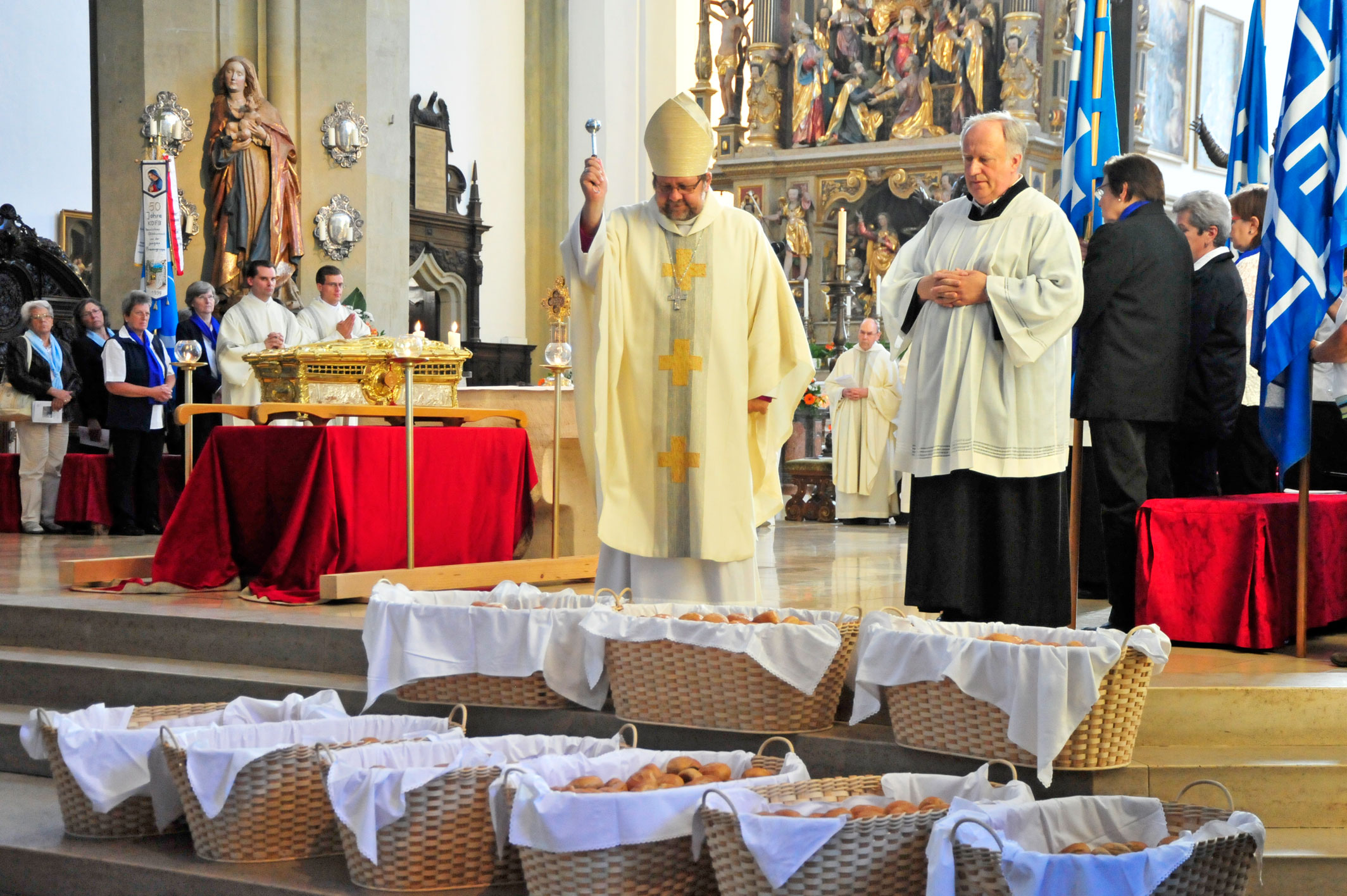 Die erste Friedenswallfahrt des KDFB fand 1947 statt. Einige tausend Frauen, die im Krieg ihre Männer und Söhne verloren hatten oder noch sehnsüchtig auf deren Heimkehr warteten, pilgerten damals zur Basilika St. Ulrich und Afra, um für dauerhaften Frieden und die Rückkehr der Kriegsgefangenen zu beten. Bereits damals, vor 70 Jahren, wurden als Zeichen der Versöhnung und Solidarität die sogenannten Ulrichsbrote gesegnet und verteilt – ein Brauch, der bis heute erhalten ist.