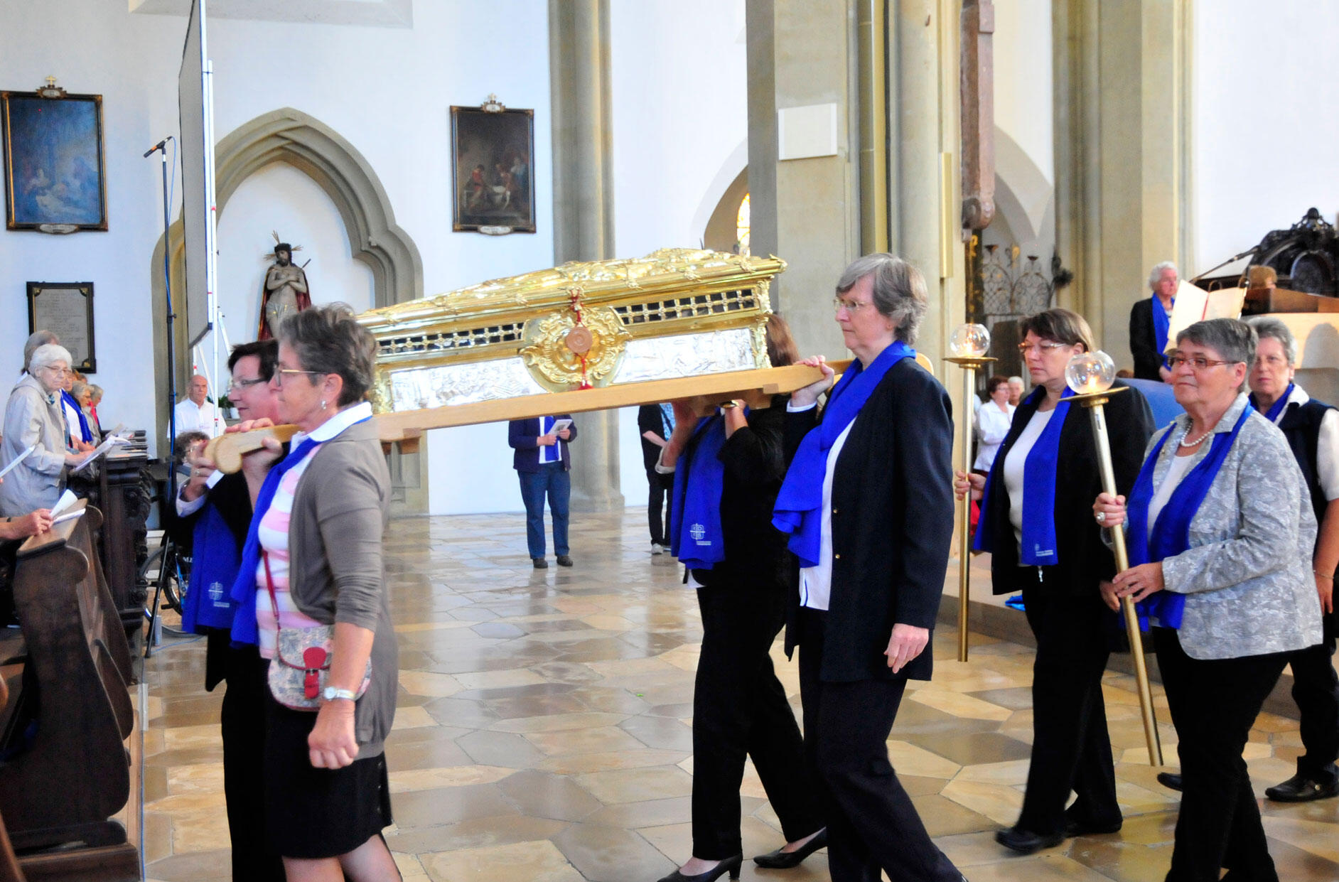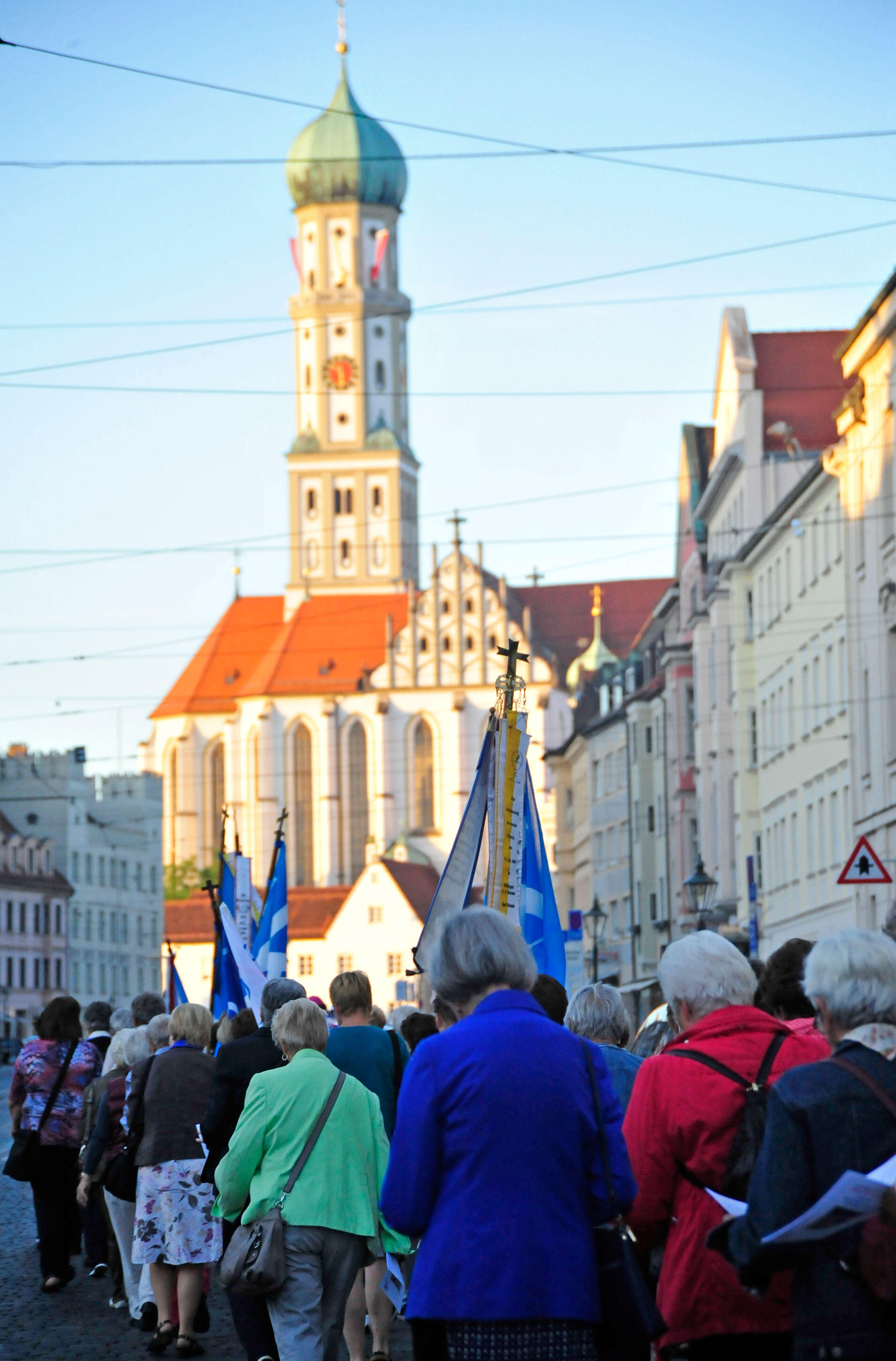 Augsburg (pba). Die Sonne war gerade erst aufgegangen, als sich heute Morgen rund 500 Frauen zur 70. Friedenswallfahrt des Katholischen Deutschen Frauenbunds (KDFB) im Rahmen der Ulrichswoche in Augsburg getroffen haben. Mit Gesang und Gebet pilgerten die Wallfahrerinnen vom Domplatz aus zur Basilika St. Ulrich und Afra. Begleitet wurden sie dabei vom Münchner Weihbischof Wolfgang Bischof, der auch dem anschließenden Pontifikalgottesdienst vorstand.