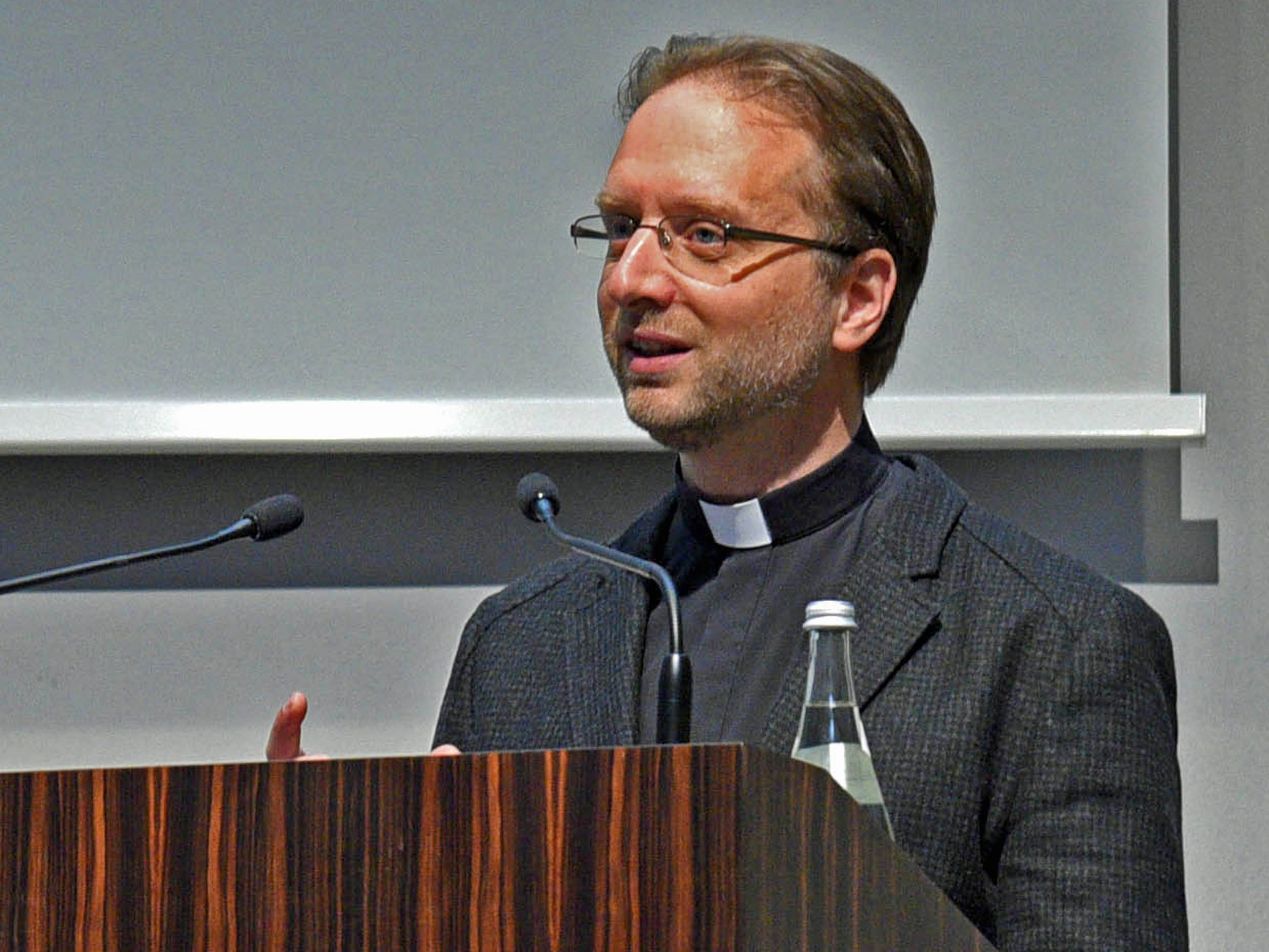 „Wir brauchen einen Kulturraum des Glaubens innerhalb einer säkularen Großkultur der religiösen Unaufmerksamkeit“, fasste Dr. Andreas Schmidt die Ursache fehlender Gotteserfahrung und seinen Lösungsansatz zusammen. Der Spiritual des Münchner Priesterseminars und ehemalige Leiter der Evangelisationsschule der Gemeinschaft Emmanuel in Altötting verdeutlichte in seinem Vortrag „Den Glauben für Andere erfahrbar machen“, wie aus einer Welterfahrung eine Glaubenserfahrung werden kann. „Gotteserfahrung muss nichts Außergewöhnliches sein“, betonte Dr. Schmidt. Häufig stecke sie bereits in der Welterfahrung, die nur im Glauben gedeutet werden müsse. Da unsere säkulare westeuropäische Kultur eine Weltdeutung im Glauben jedoch erschwere, „braucht es eine Deutungshilfe, um Welterfahrung als Glaubenserfahrung zu begreifen“. Begünstigt werden könne diese durch die Schaffung von Kulturräumen, „in denen der Glaube nichts ungewöhnliches ist und Glaubenserfahrungen mit anderen geteilt werden können“. Am Ende seines Vortrags ermutigte Dr. Schmidt die Pfarreiverantwortlichen, ein kulturelles Umfeld zu etablieren, in dem Glaubenserfahrungen gedeutet, verbalisiert und als Zeugnis weitergetragen werden können.