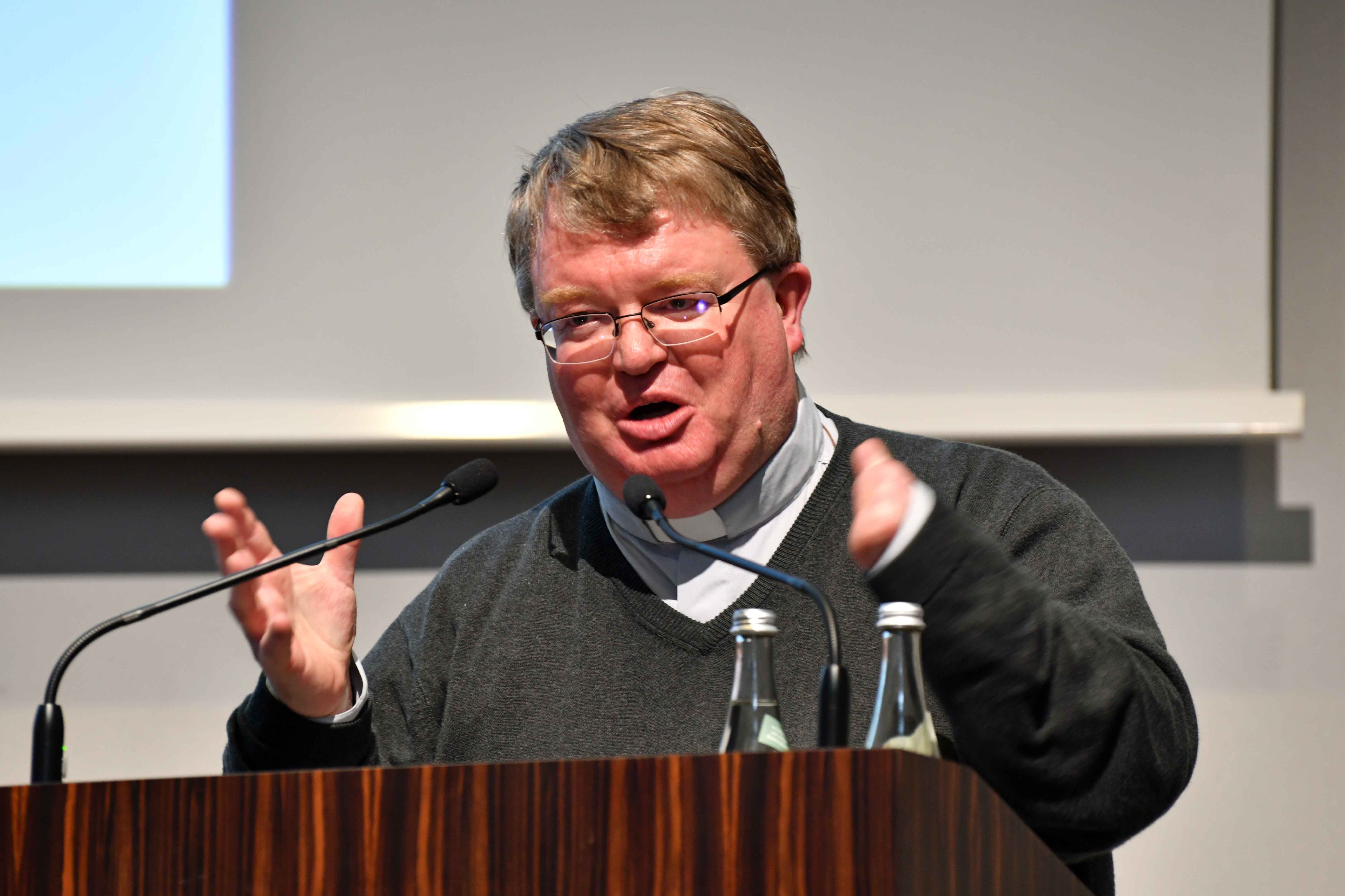 Eine theologisch-wissenschaftliche Herangehensweise an den Missionsbegriff lieferte Prof. Dr. Arnd Bünker, Leiter des Schweizerischen Pastoralsoziologischen Instituts in St. Gallen. „Mission ist ein Krisenbewältigungsbegriff, der immer wieder dann an Aktualität gewinnt, wenn es schwierig wird“, stellt er zu Beginn seines Vortrags „Missionarisch Kirche sein“ fest. Zugleich gehe der Begriff „Mission“ auch immer mit der Gefahr einer Schuldhaftigkeit einher, die sich zum Teil bis heute in einem Subjekt-Objekt-Denken oder einem Wahrheits- und Überlegenheitsanspruch äußere. In diesem Zusammenhang stellte Professor Bünker zwei Denkmodelle vor, zwischen denen sich kirchliche Mission bewegt und die „zu einer kritischen Analyse des Missionsbegriffs und dessen Instrumentalisierung“ herangezogen werden müssten.