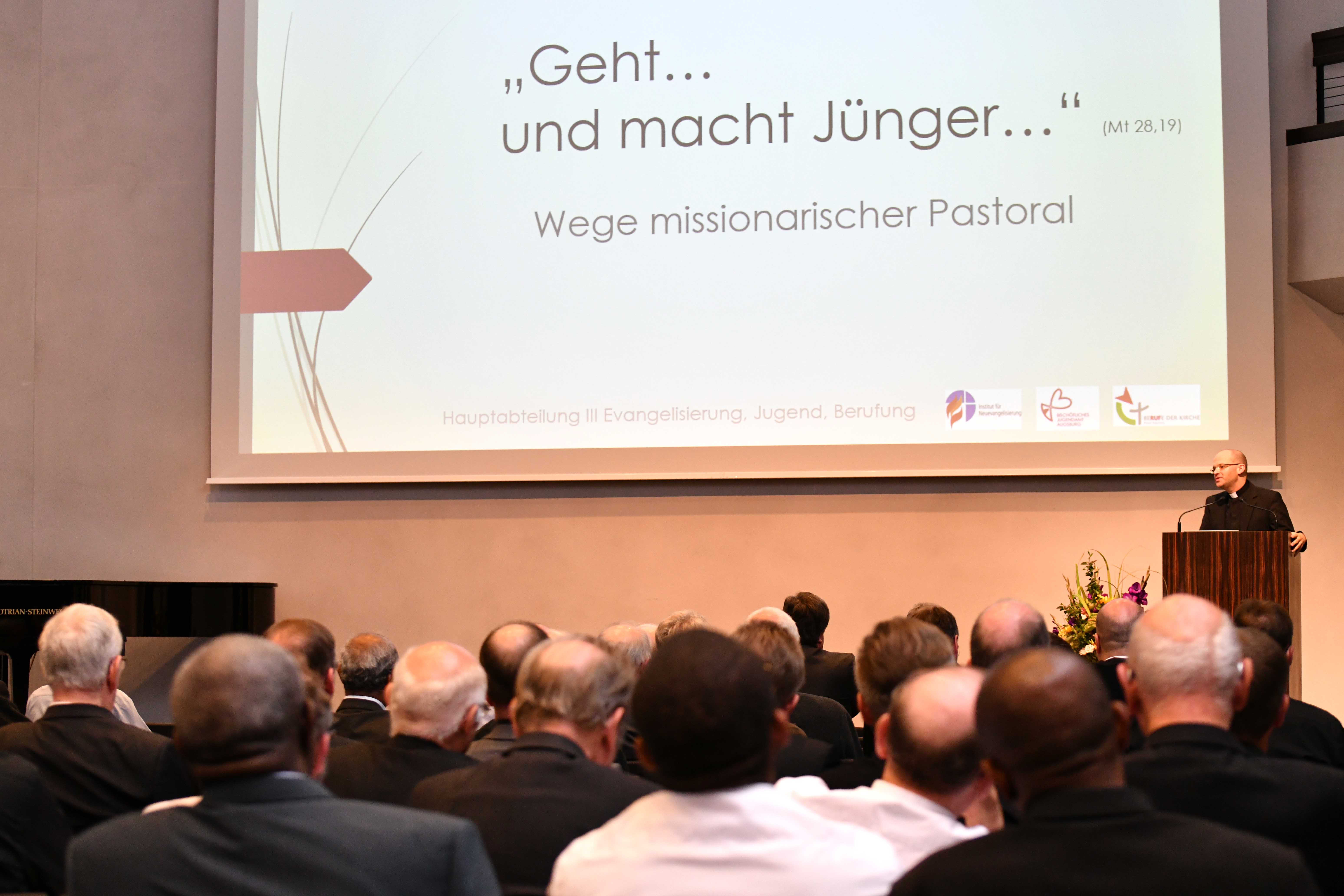 Warum es so wichtig ist, sich das Thema „Jüngerschaft“ in den Pfarreien und den Pfarreiengemeinschaften zum Herzensanliegen werden zu lassen, veranschaulichte er mit einer nüchternen Bestandsaufnahme: Viele Menschen heute erlebten in ihrer Pfarrei keine Gemeinschaft, in der Jesus die Mitte ist. Bei vielen Menschen fehlten das Glaubenswissen und die Glaubenspraxis. Und viele hätten nie gelernt, was es bedeute, Zeuge Jesu zu sein. Daher empfahl er den anwesenden Seelsorgern, sich und das Tun in den Pfarreien vor Ort regelmäßig zu reflektieren: „Wozu tun wir das, was wir tun? Zielt es wirklich darauf ab, Jünger Jesu zu machen?“