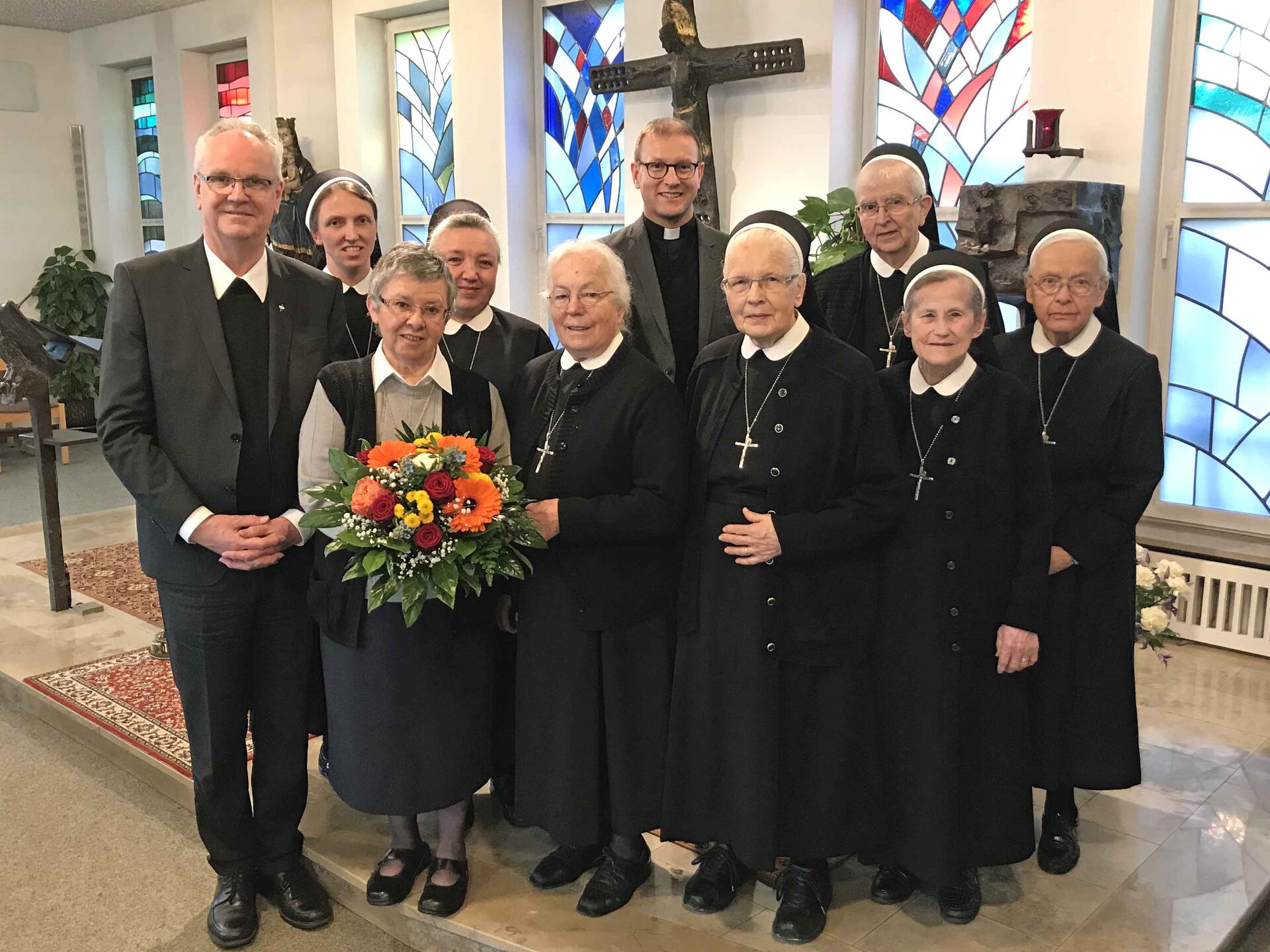 Die Theresienschwestern gehören zur pallottinischen Familie. Deshalb nahm Pater Alexander Holzbach als Vertreter des Provinzialats der Pallottiner in Friedberg an der Versammlung teil. In der Aussprache nach dem Rechenschaftsbericht von Schwester Gabriele über die zurückliegenden sechs Jahre ging es um die menschliche, wirtschaftliche und spirituelle Situation der Gemeinschaft. „Trotz unseres Alters und der klein gewordenen Zahl“, so Sr. Gabriele, „wollen wir weiterhin aktiv unser Leben gestalten im Dasein und im Gebet für die Menschen, denen wir im Alltag begegnen und die mit uns in der Kapelle des Mutterhauses Gottesdienst feiern.“