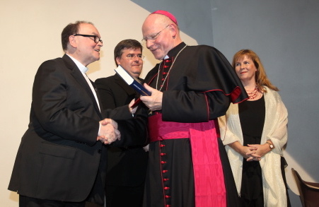 Ein im wahrsten Sinn des Wortes „handgreifliches“ Geschenk wurde Bischof Konrad von Generalvikar Harald Heinrich, Domdekan Dr. Bertram Meier und Frau Professor Dr. Gerda Riedl überreicht: Eine gut 400 Seiten lange Festschrift unter dem Titel: „Neue Evangelisierung – Kirche konkret. Personen. Positionen. Perspektiven“. Sie enthält, wie Domdekan Meier bei der Überreichung an Bischof Konrad hervorhob, „einen bunten Strauß von geistigen Blüten“. Die 33 Autorinnen und Autoren spiegelten die Vielfalt der Kirche und wichtige Wegmarken des Bischofs wider. In der Festschrift kommen recht unterschiedliche Glaubenskontexte zu Wort. Der Titel besage, dass die Evangelisierung kein kurzfristiges Projekt sei, sondern Dauerauftrag der Kirche. Sie sei zuallererst Selbstevangelisierung in allen drei Bereichen kirchlichen Tuns: im Zeugnis, im Gottesdienst und in der Nächstenliebe.