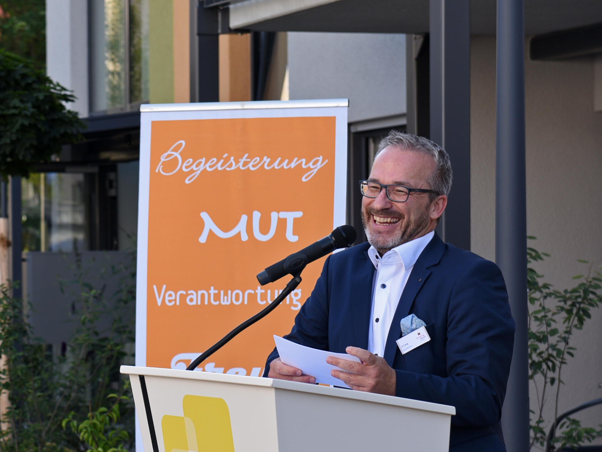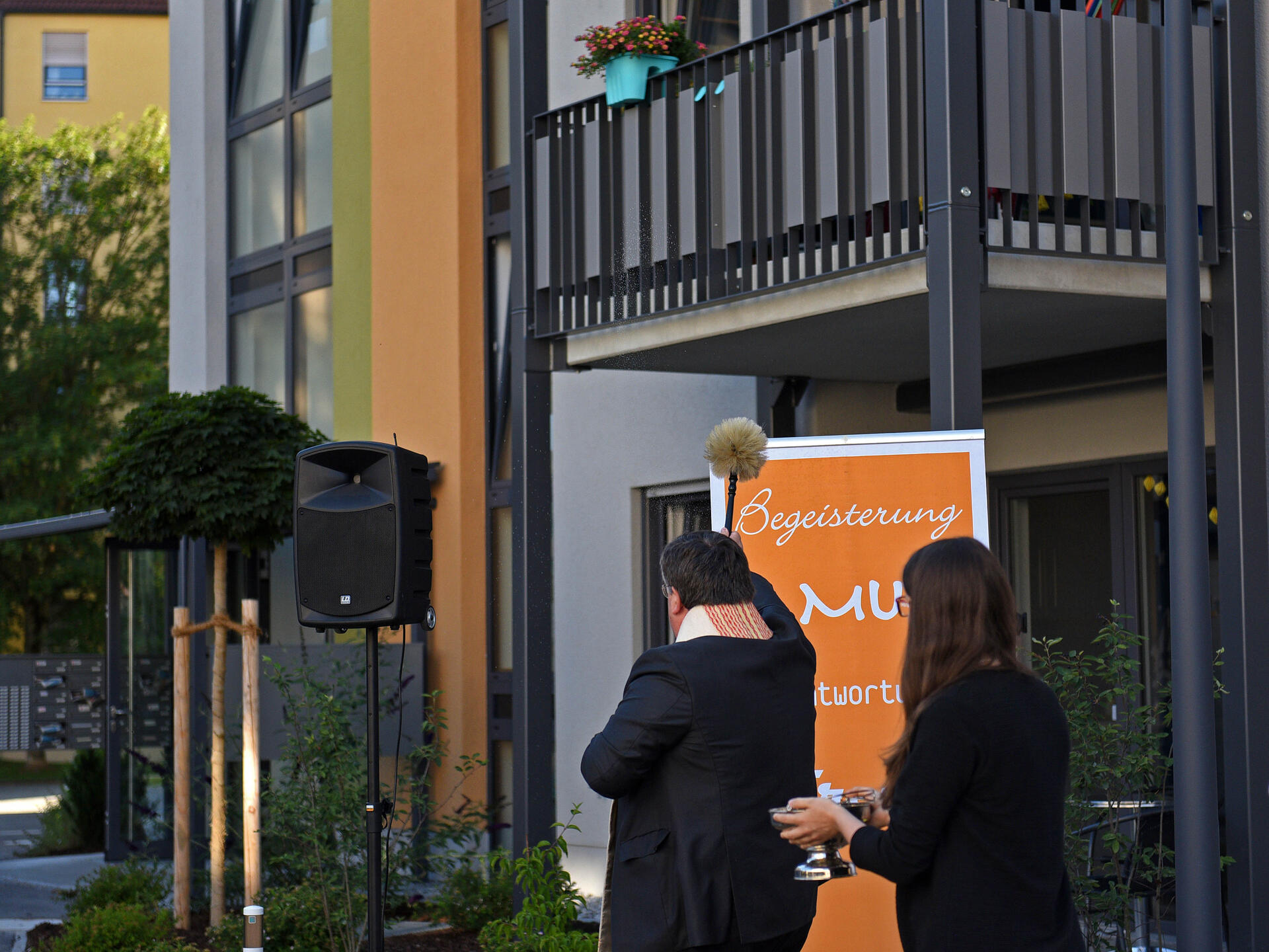 Der Anbau dieses „bewährten und belebten Studentenwohnheims Haus Edith Stein“ sei, so Domkapitular Harald Heinrich in seinem Grußwort, Teil des Wohnungsbauprojektes des Bistums. Mit diesem werde in den kommenden Jahren 150 Millionen Euro in hauptsächlich geförderten und sozialen Wohnungsbau investiert. „Der Mehrwert, den wir mit dem Bau solcher Wohnprojekte stärken wollen ist nicht nur das Bereitstellen von vier Wänden. Wir wollen mehr bieten, mehr menschengerechtes“, betonte Domkapitular Heinrich. Der Mehrwert dieses erweiterten Studentenwohnheimes sei, mit entsprechenden Angeboten und Räumen miteinander zu leben und Formen guten Miteinanders zu stärken. „Denn vielleicht heißt ja Wohnen in der Zukunft möglicherweise, eine Lebensqualität zu fördern, in der man aufeinander schaut und sich unterstützt.“