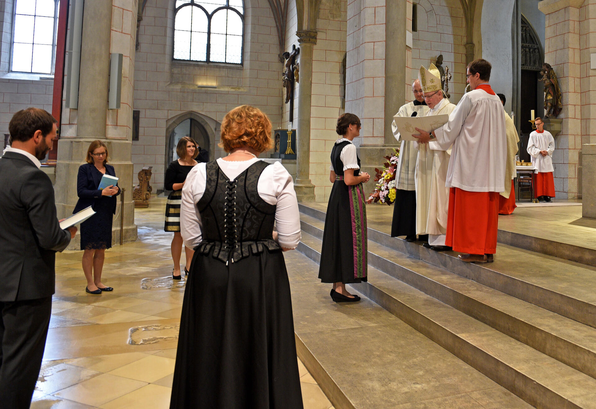 „Mit Ihrem Entschluss, sich heute in den pastoralen Dienst unseres Bistums aussenden zu lassen, beschreiten Sie den Weg des konkreten Lebens auf dem Sie die lebendige Begegnung mit Gott und den Menschen im Dienst der Kirche suchen“, wandte sich Bischof Konrad an die Auszusendenden. So sei er doch jedes Jahr aufs Neue fasziniert von den Motivationen und Beweggründen der Kandidaten, einen Dienst als Gemeindereferentin oder Pastoralreferent/-in anzutreten. „Fast gleichlautend ist dabei immer die Rede von der Gemeinschaft des Glaubens, vom Wachstum im Glauben und von der Freude, den Glauben miteinander zu teilen, miteinander auf dem Weg des Glaubens zu sein und einander zu begleiten“, so der Bischof. Die Kirche bedürfe daher des Dienstes, der Feinfühligkeit und des Gebets der Auszusendenden, „damit sie mit ihrer Lebensführung und ihrem Beispiel selber zum Zeichen werden, das zum Leben hinführt“.